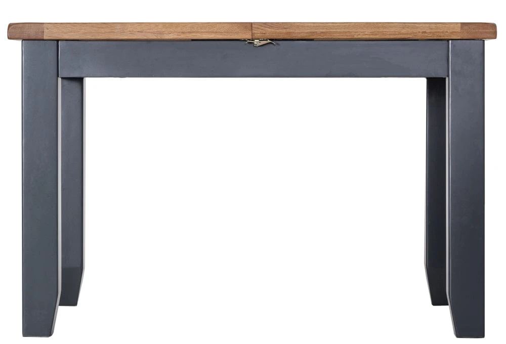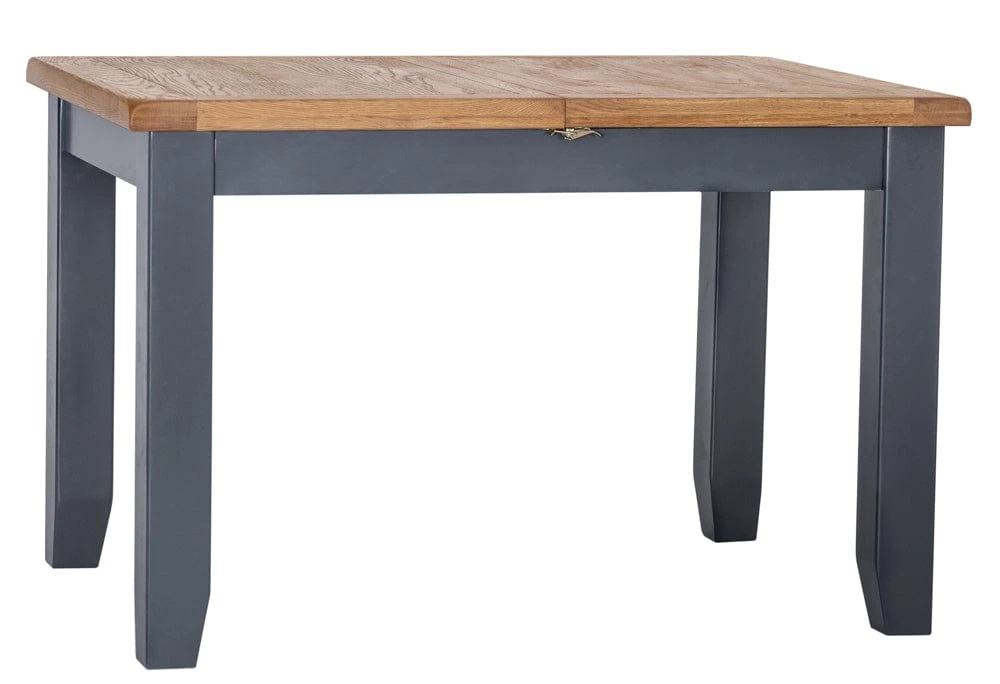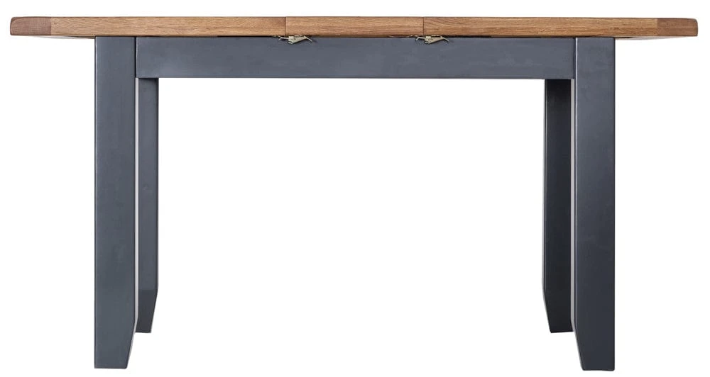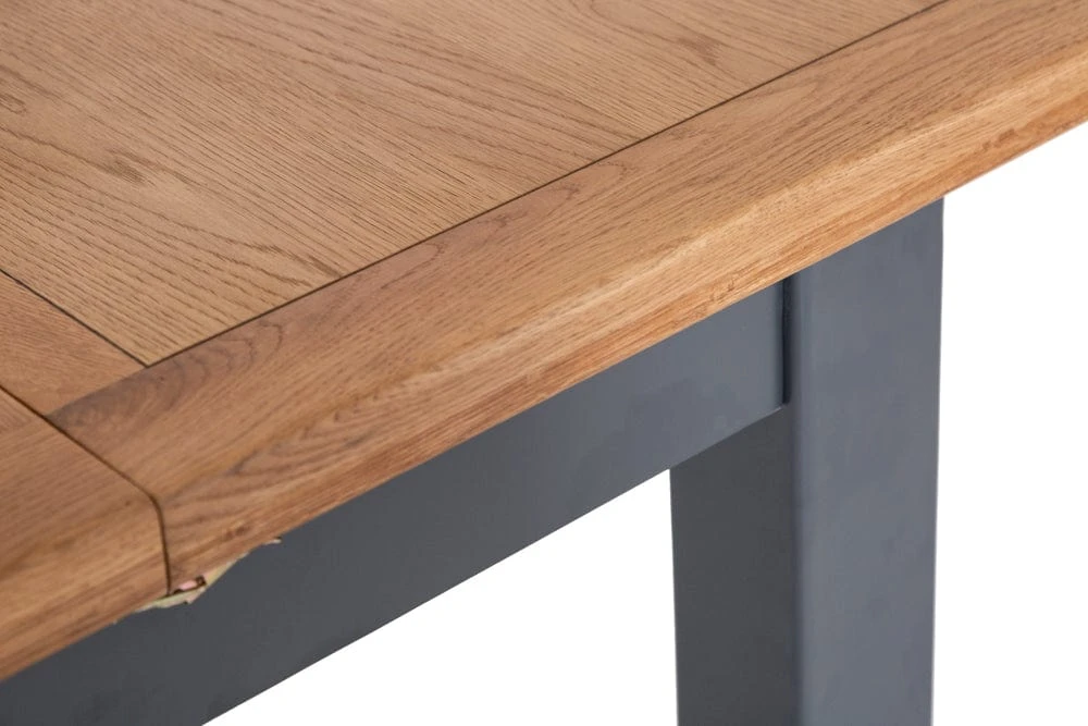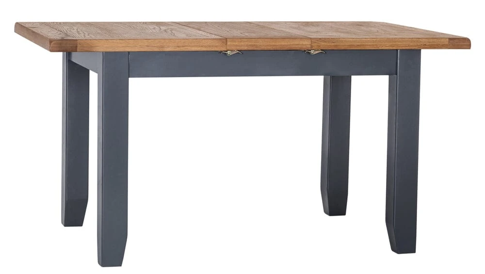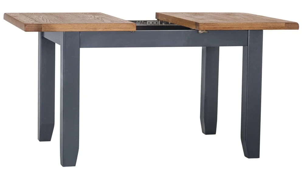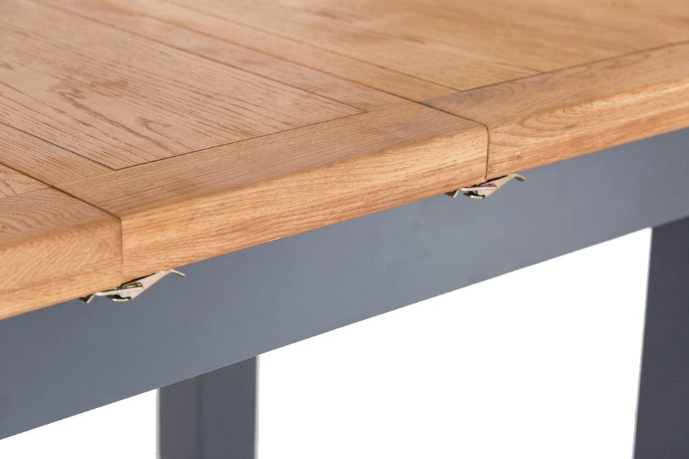Feed a crowd (or six at the least) with this Hampshire blue painted oak small extending dining table. This distinctive navy blue is deservedly popular and adds a sophisticated touch to the laidback oak top. The table extends to 150cm with a matching insert that clips into place for extra stability.