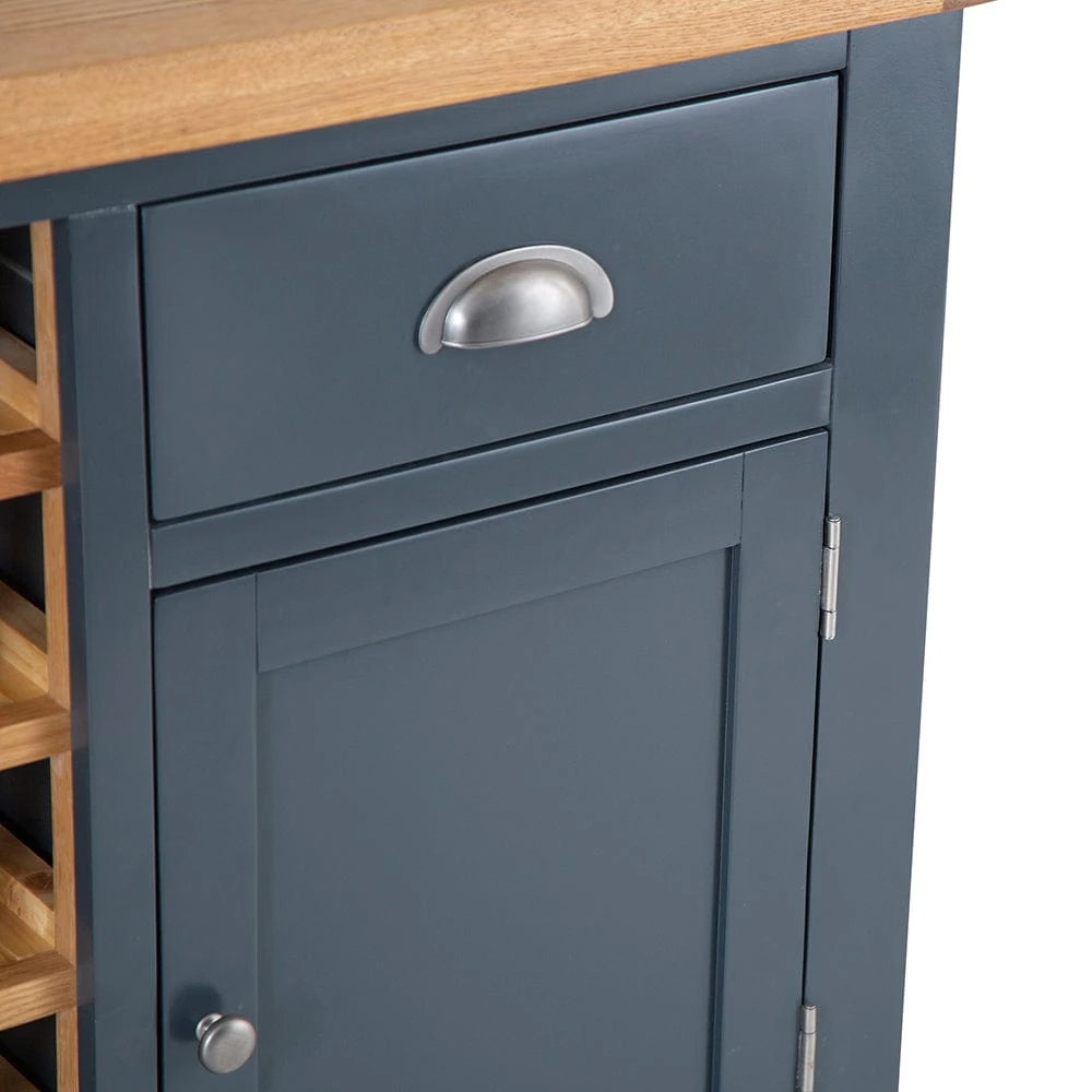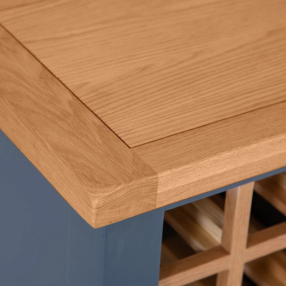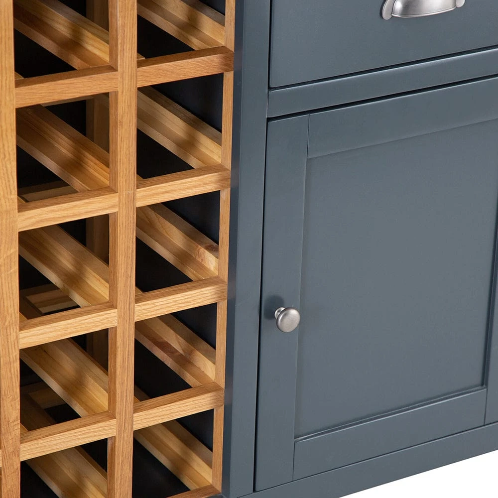 Keep this Hampshire blue painted oak small sideboard wine rack in your dining room or kitchen for essential extra storage as well as an attractive centrepiece. It can hold up to 15 bottles to keep you in sure supply whenever you’re entertaining friends, and the cupboard is ideal for wine glasses, decanters and jugs.