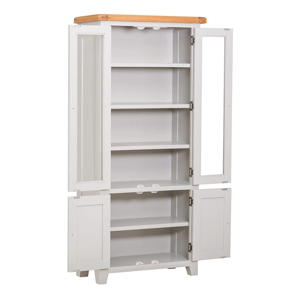 With its effortless elegance and intuitive design, this Hampshire grey painted oak glass display cabinet will make all your storage dreams come true. Use it in your kitchen to stow plates and bowls fresh from the dishwasher, and store serving dishes, casseroles and jugs in the lower cupboard.