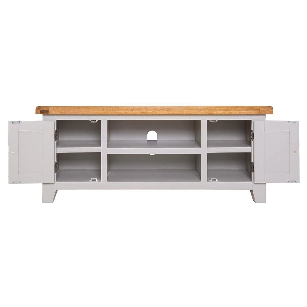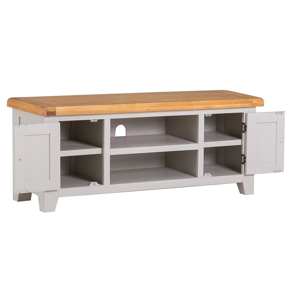 This Hampshire grey painted oak large TV unit combines super-smart storage features with showstopping looks to make your downtime even more enjoyable.