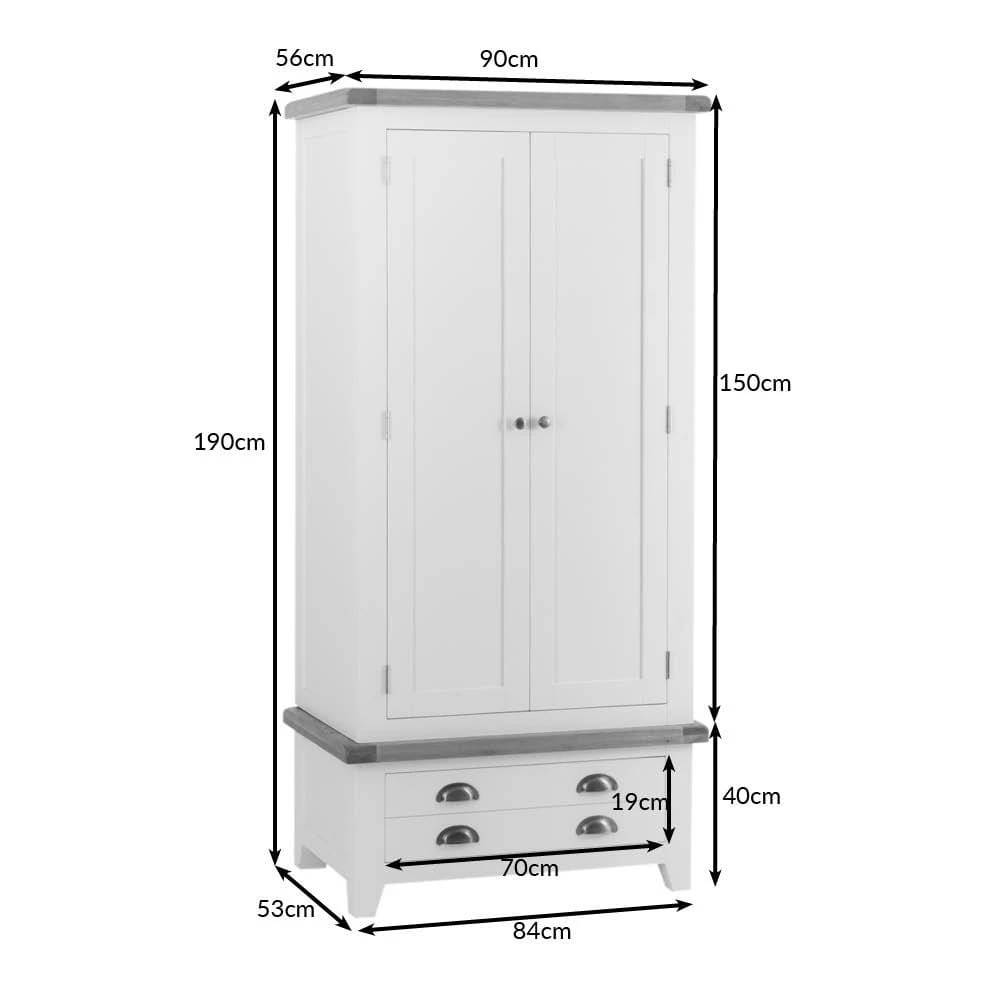There’s 150cm of hanging space, which leaves plenty of room for your suits and coats. The false double drawer front conceals a generous single drawer for socks, belts and ties – or cosy knits for colder weather. The timeless colour combination and classic shape of this wardrobe suit both modern and traditional bedrooms.