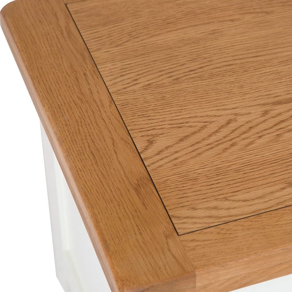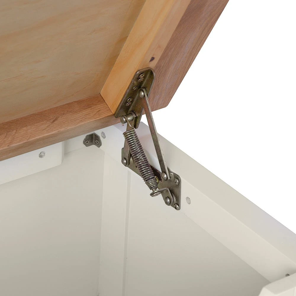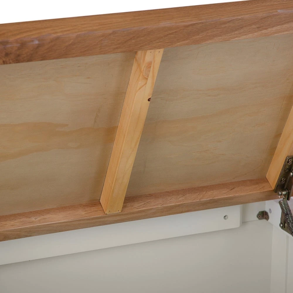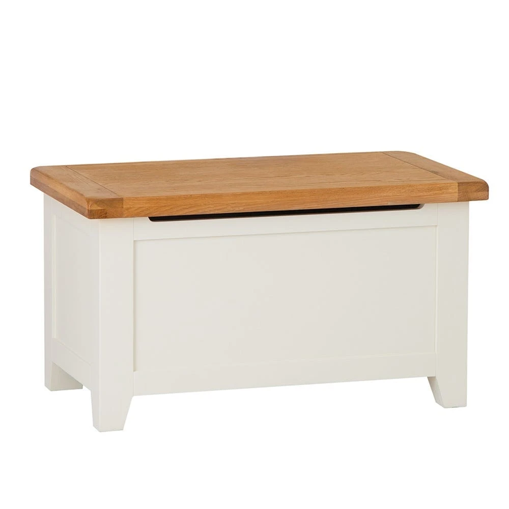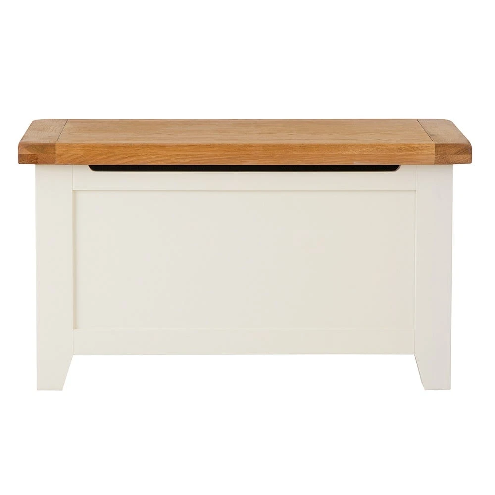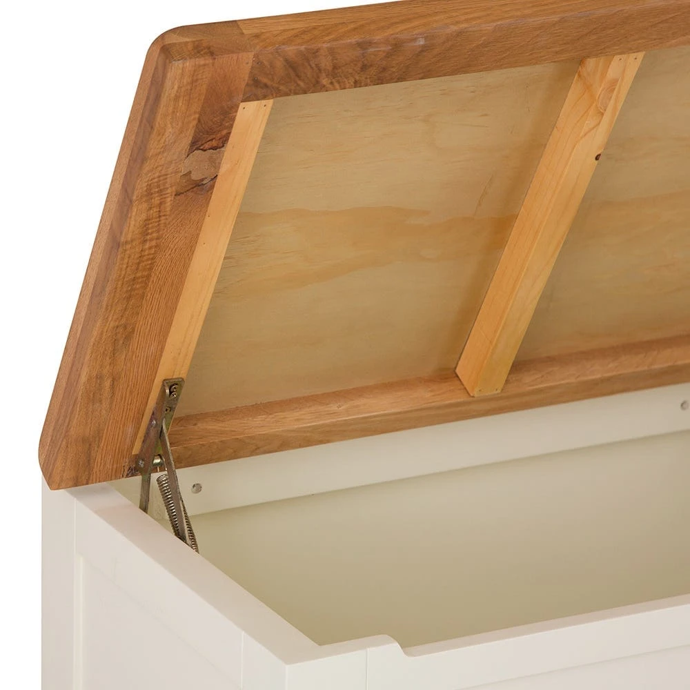 Our ever-popular ivory hue brings understated elegance to any space, and the oak lid adds an appealingly rustic finish. The soft-close hinges and handy gap at the front make it super-easy to open and shut, and the tapered legs bring a touch of delicacy to the chunky frame.