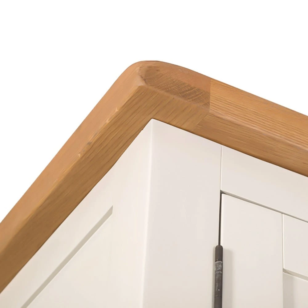 Our sophisticated ivory hue complements the golden oak top for cosy luxury in your bedroom. The round brushed metal handles add the finishing stylistic touch, while magnetic fixings secure the doors. When the interior looks this good, however, you’ll be tempted to leave them open.