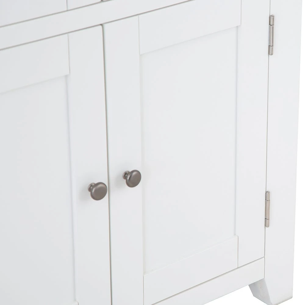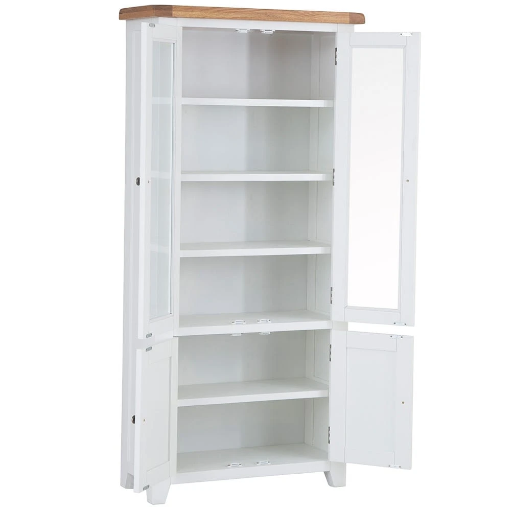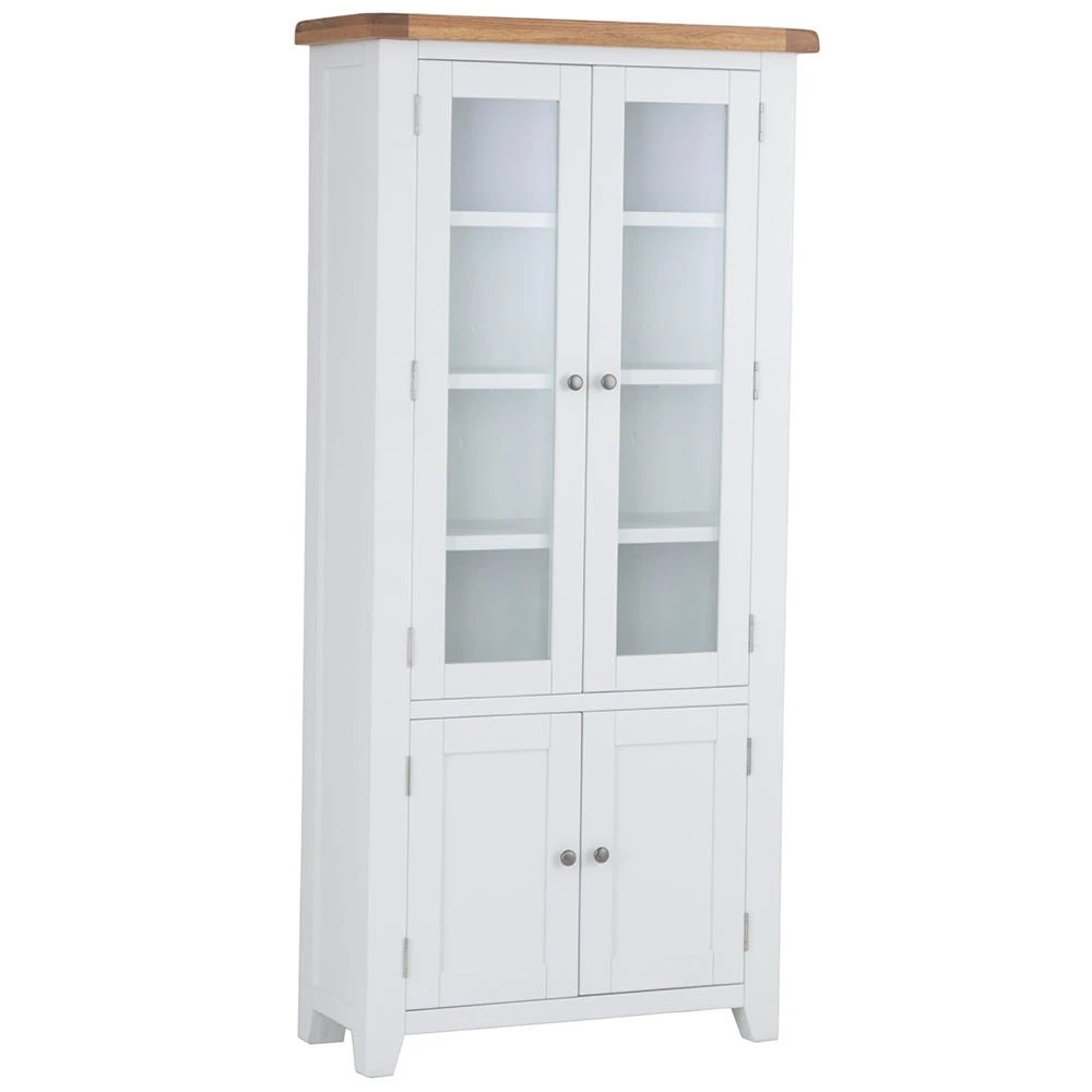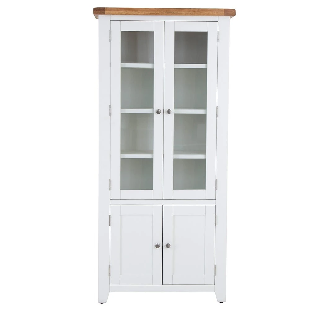 This Hampshire white painted oak glass display cabinet brings both a luxury look and additional storage space to your dining or living area. The breezy white breathes fresh air into your home, and the oak top adds a rustic touch.