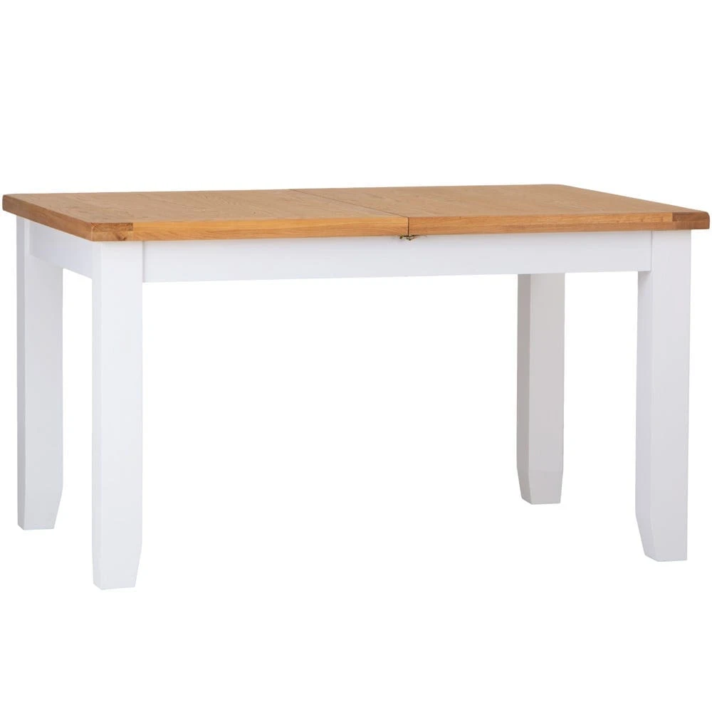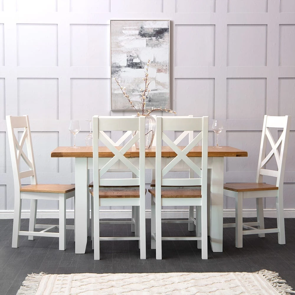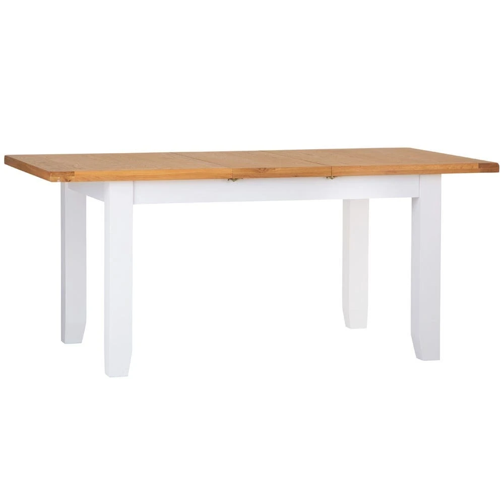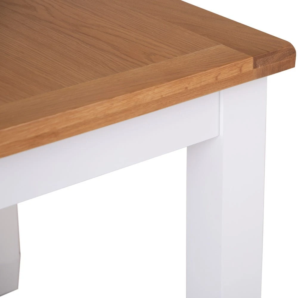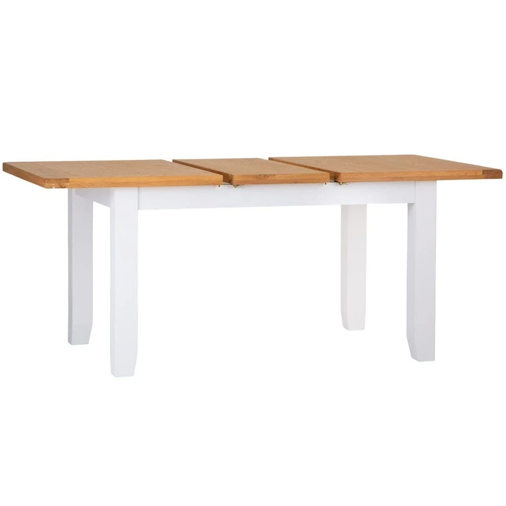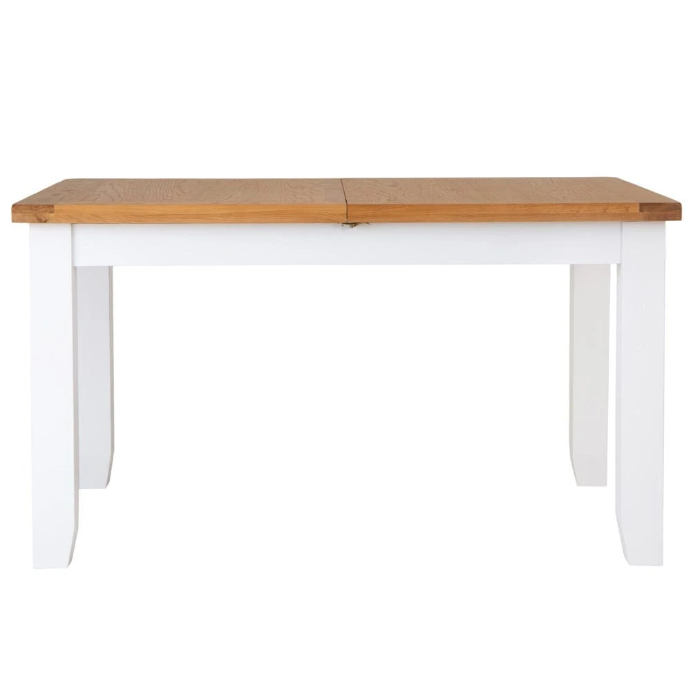 Unexpected guests? No problem. Our super-smart Hampshire white painted oak small extending dining table extends to accommodate those last-minute extras, so there’s always room for a little one (or two). It brings a touch of class to breakfast, lunch and dinner, with the honey-coloured chunky oak tabletop striking a perfect contrast with its white tapered legs.