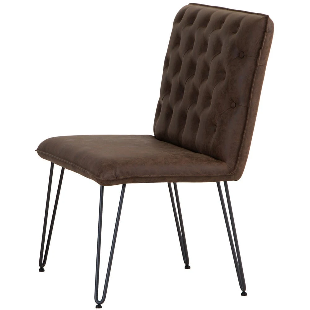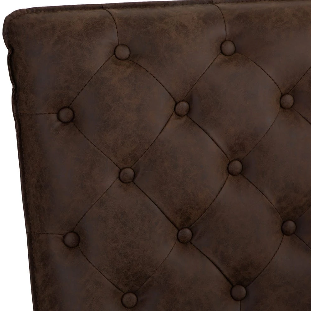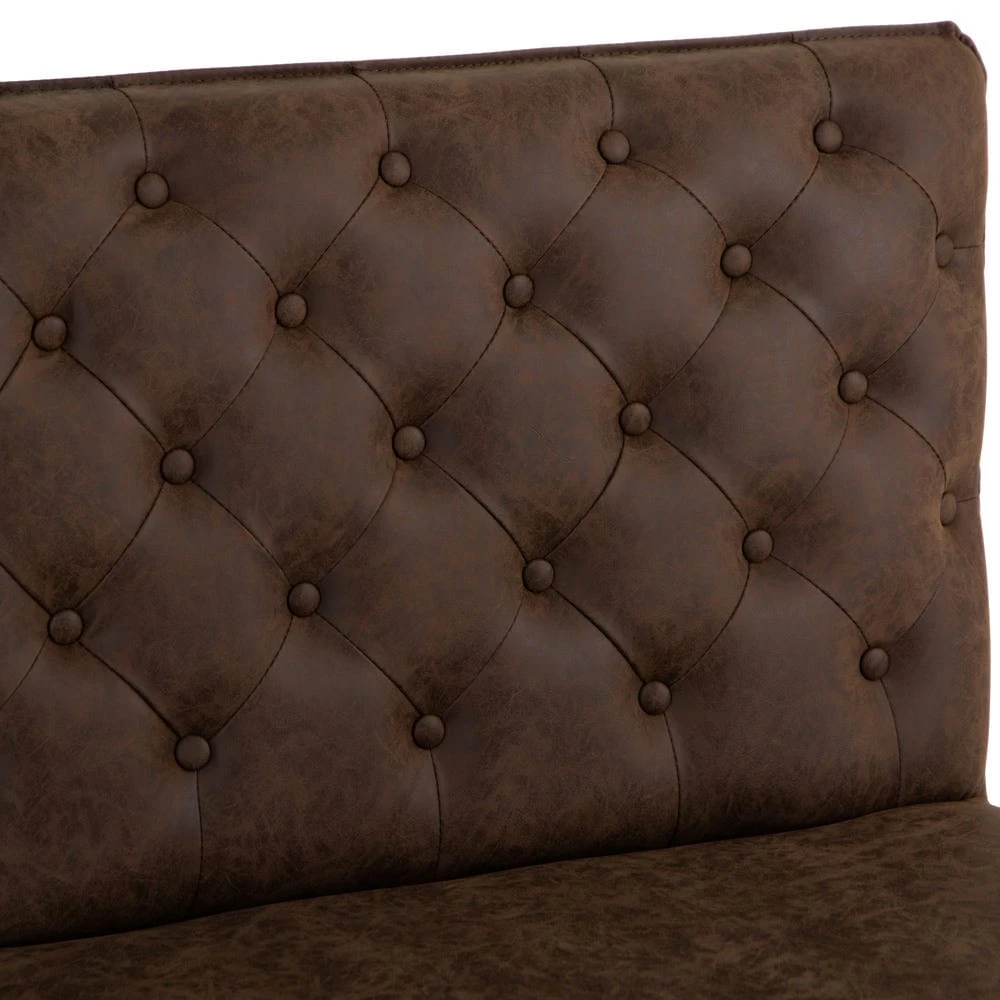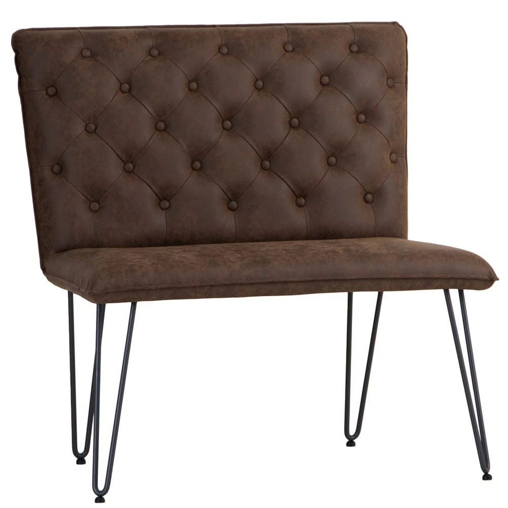 Our Industrial brown 90cm studded-back bench lets you seat your guests in inimitable style, with compact dimensions to accommodate two. Its padded back is studded with buttons for a classic chesterfield look, and the rich brown colour brings a timeless finish to an item that will enhance any style of space.