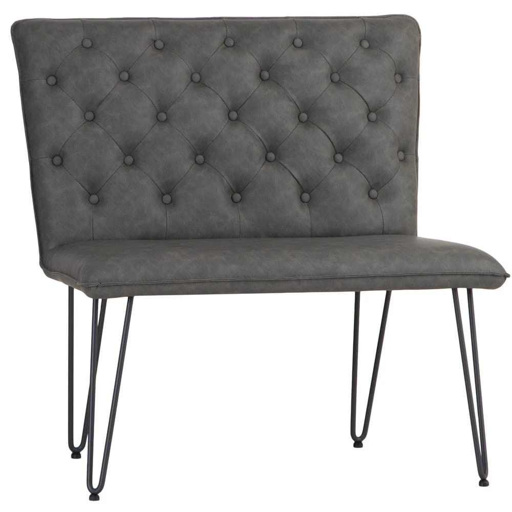 This Industrial grey 90cm studded-back bench is ideal for two. Its padded seat and gently reclining back will keep your dinner guests sitting comfortably right through till the dessert course.
