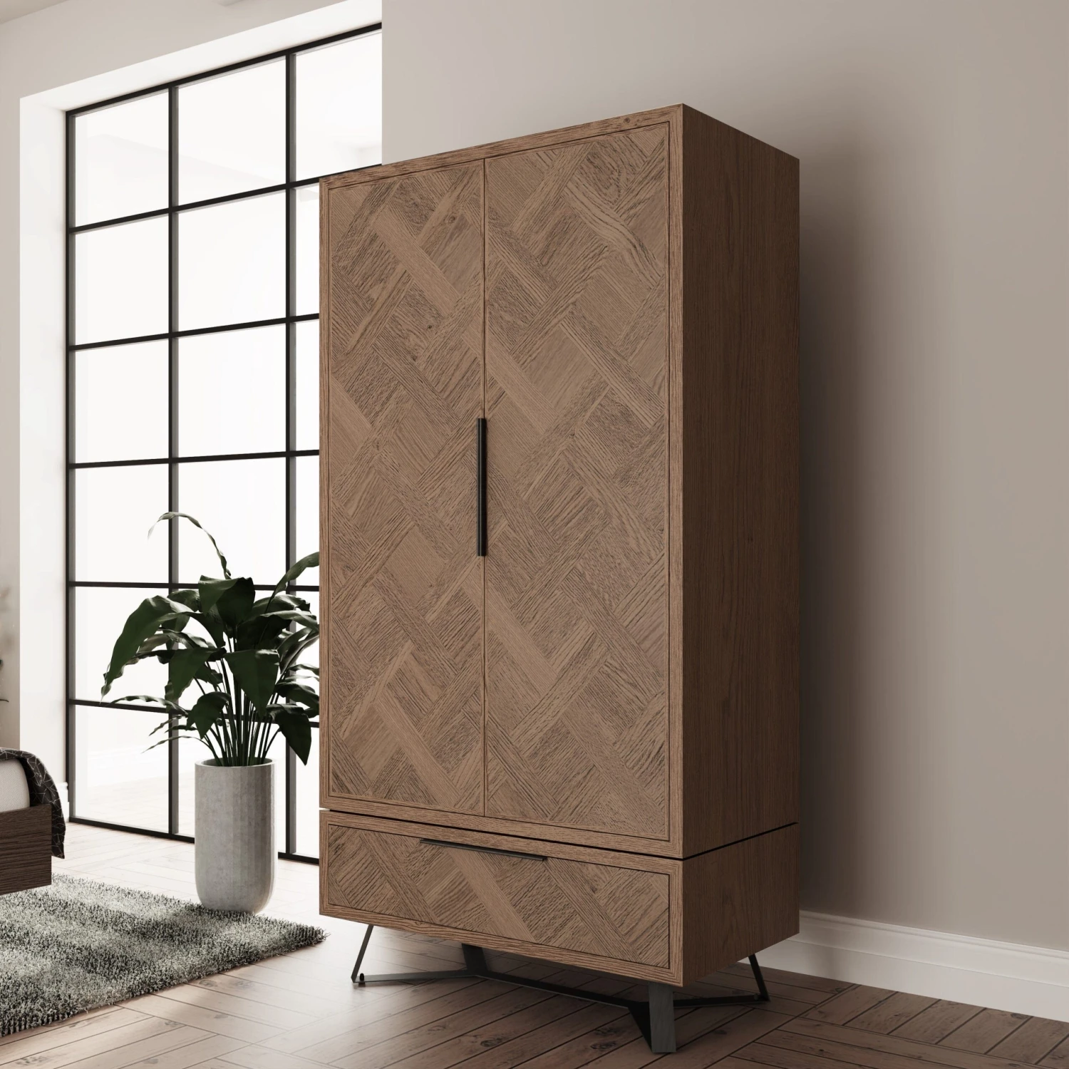 Industrial Oak 2 Door Wardrobe