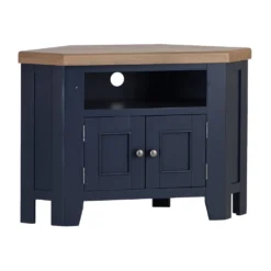 Wessex Smoked Oak Blue Painted Small Bookcase With Wicker Baskets