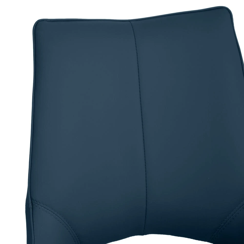 The Milan Chrome Blue Swivel Dining Chair delivers comfort and style for any meal. With angular chrome legs, it swivels up to 120 degrees for an ergonomically designed experience. The sleek design of the blue and chrome legs are the perfect touch for any dining space.