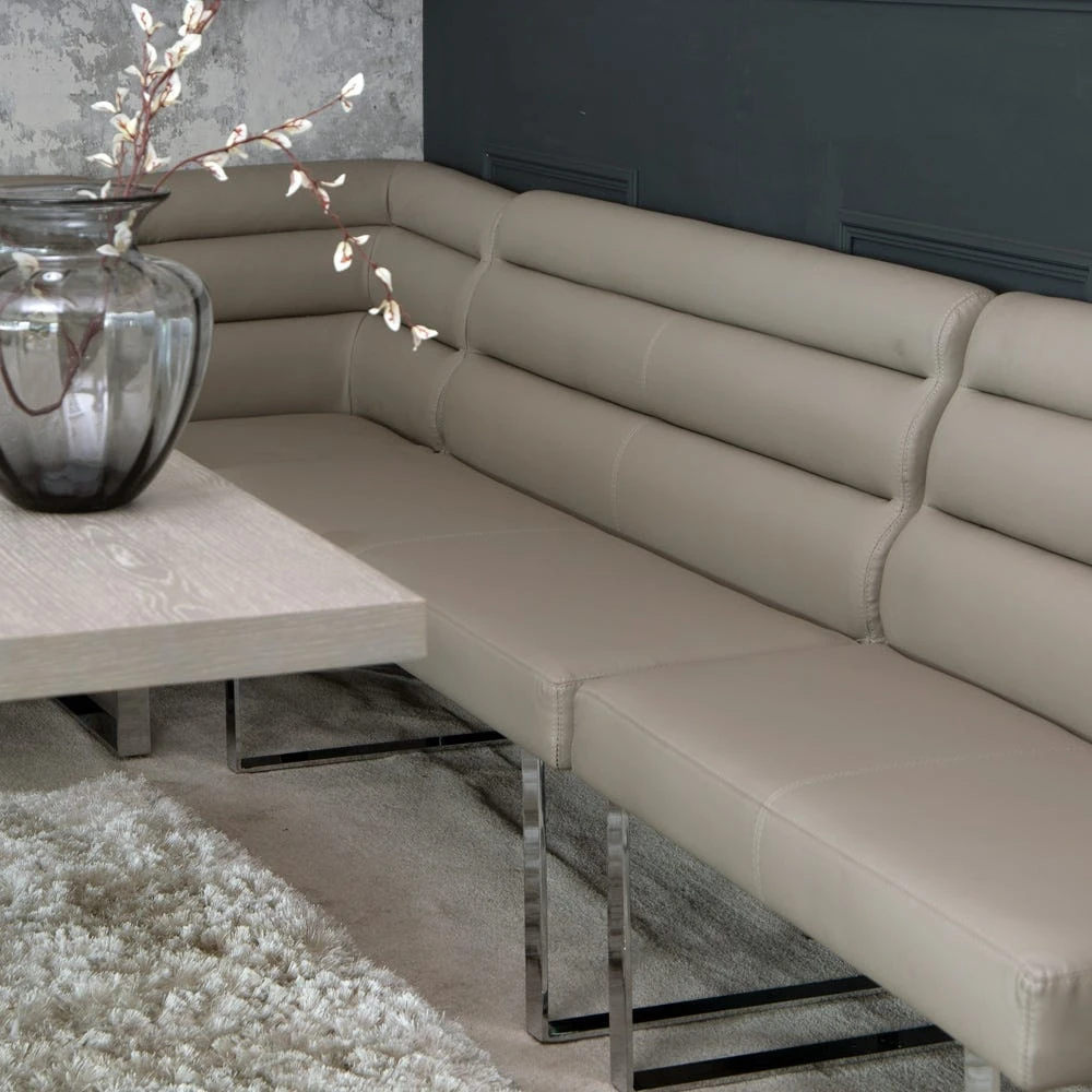 Tired of the traditional? Meet our Milan Chrome & Oak Collection. This stunning collection pairs grey-washed real oak veneer with chrome detailing in the most sophisticated and contemporary way imaginable. Bringing light and texture to any room, this stunning Living & Dining furniture collection features rounded chrome legs and accents, adhering to the latest interior design trends. To ensure consistency and in line with the overall contemporary feel of the range, only the highest grade solid real wood veneers have been chosen in the manufacturing of this unforgettable Collection, to ensure there are no imperfections. Loaded with unique items, look out for the wonderful Bench combinations, which can connect together to form a booth.