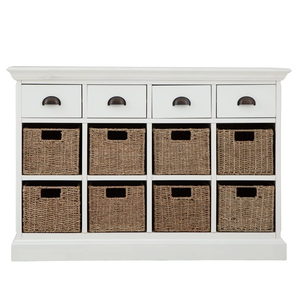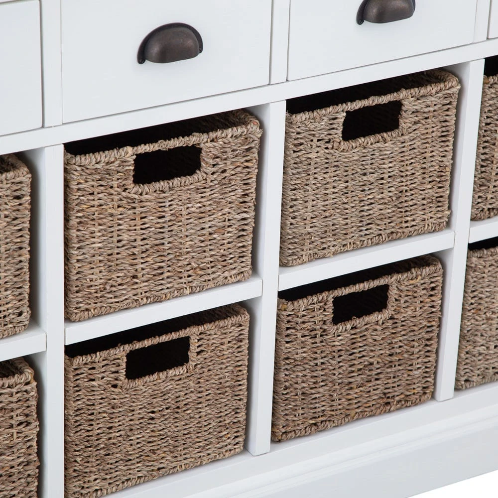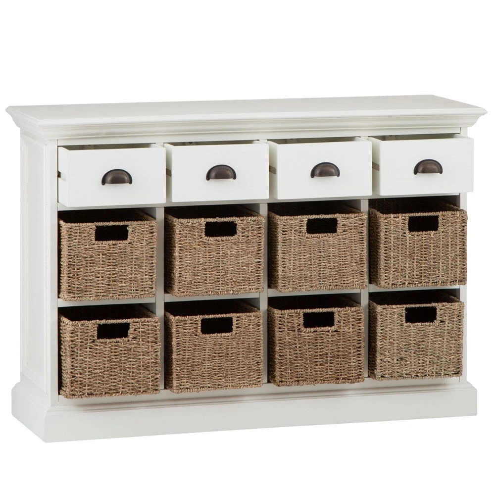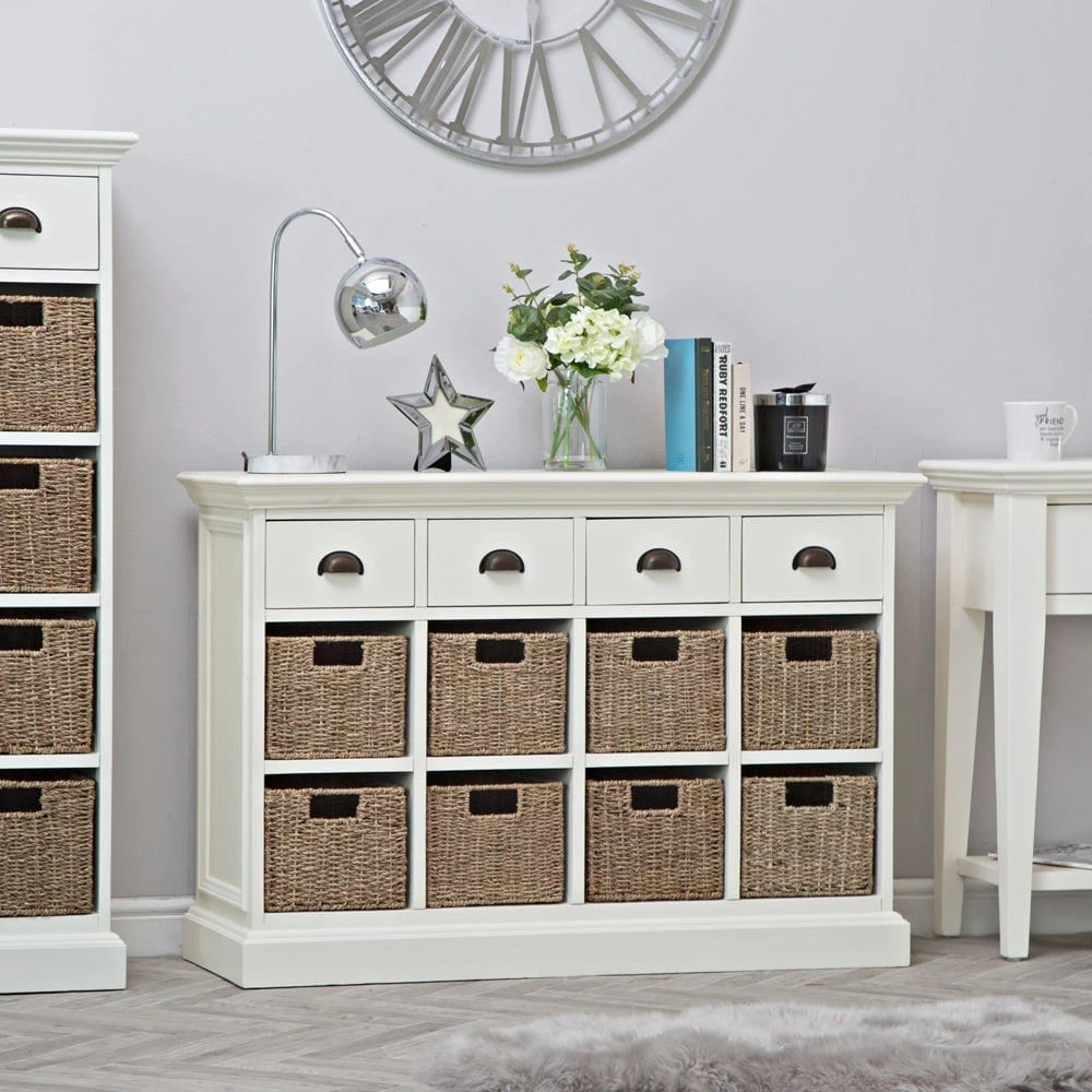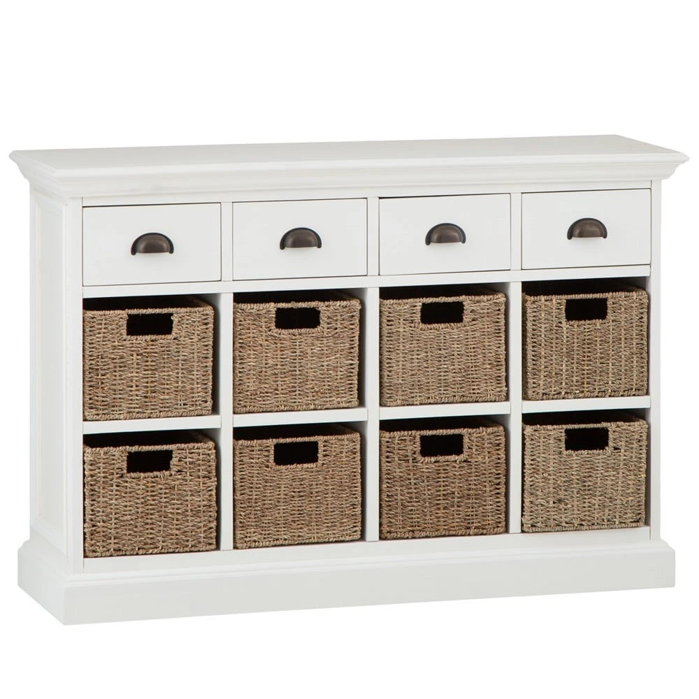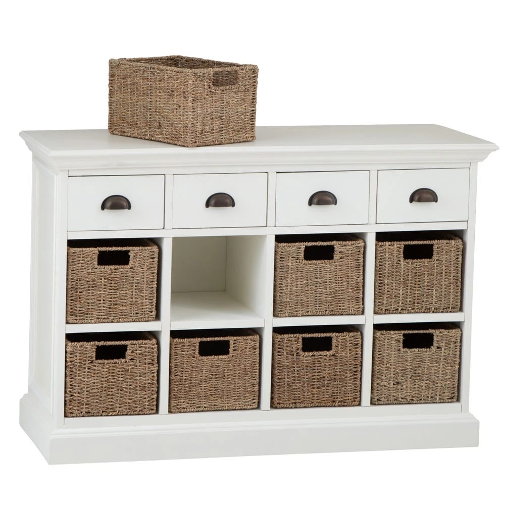 Our stylish Monaco White Wicker 4 drawer 8 wicker basket sideboard is a highly practical addition to your kitchen or dining area. This scene-stealing piece has four drawers for cutlery and utensils, while the wicker baskets can accommodate baking accessories, Tupperware and table linen. Alternatively, use it in a family room to keep your floor clear and clutter-free.