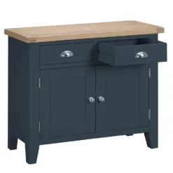 Wessex Smoked Oak Blue Painted Small 2 Drawer 2 Door Sideboard