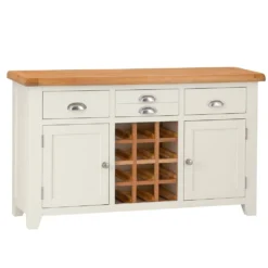 Chester Stone Painted Oak 2 Door Large Sideboard With Wine Rack