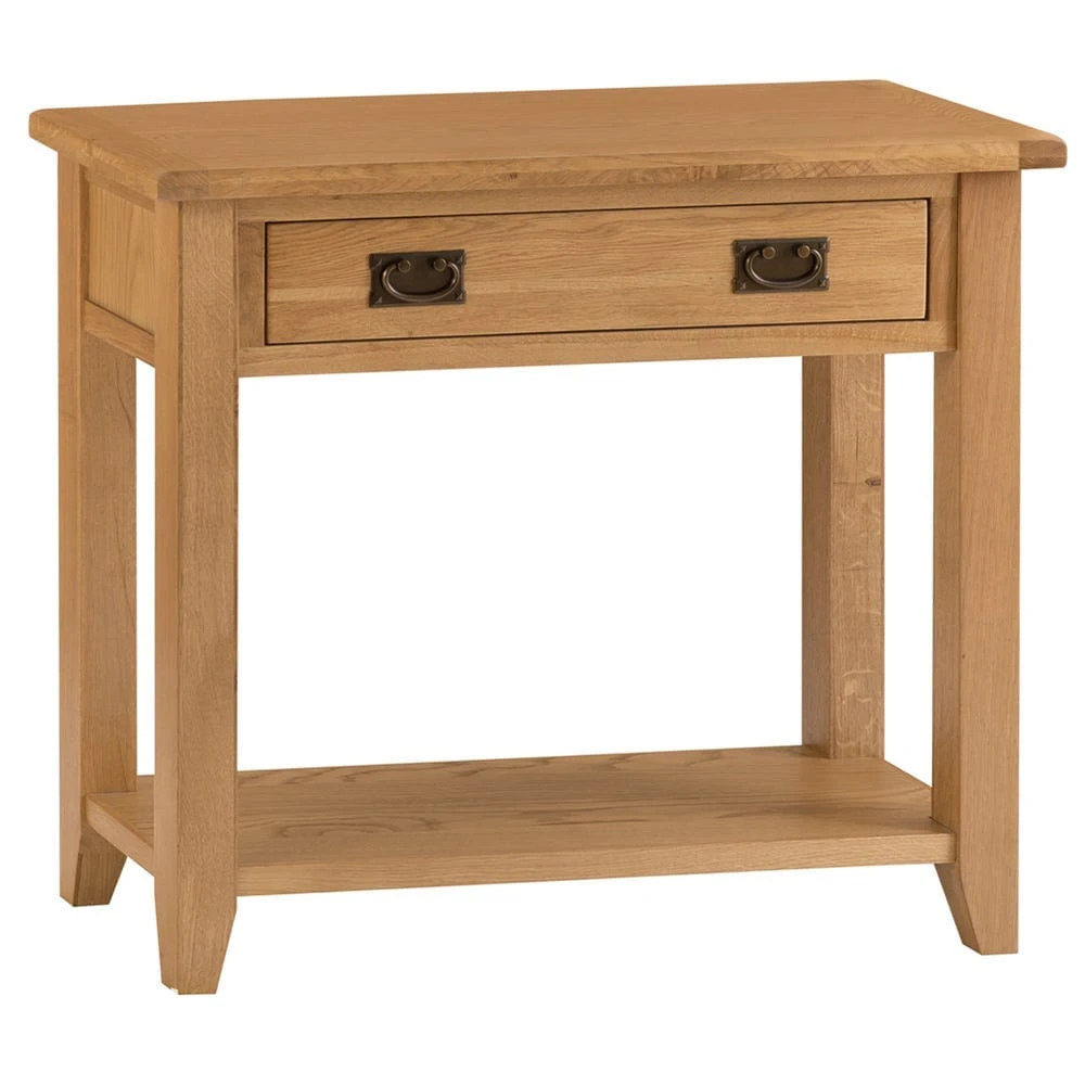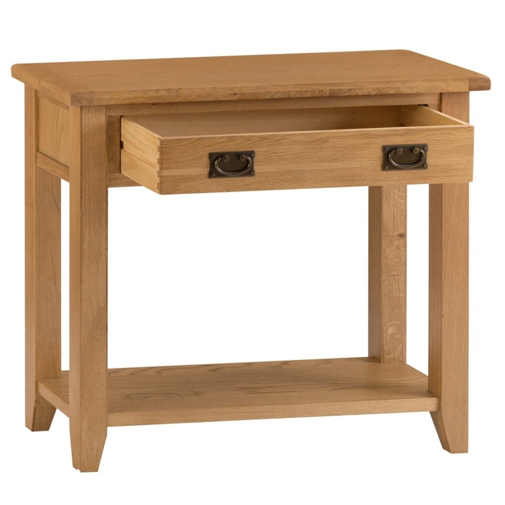 Warm up your welcome with this Rustic oak console table. At just 35cm deep, this slender piece takes up minimal space even in narrow hallways, and the wide drawer and lower shelf give you plenty of discreet storage space.