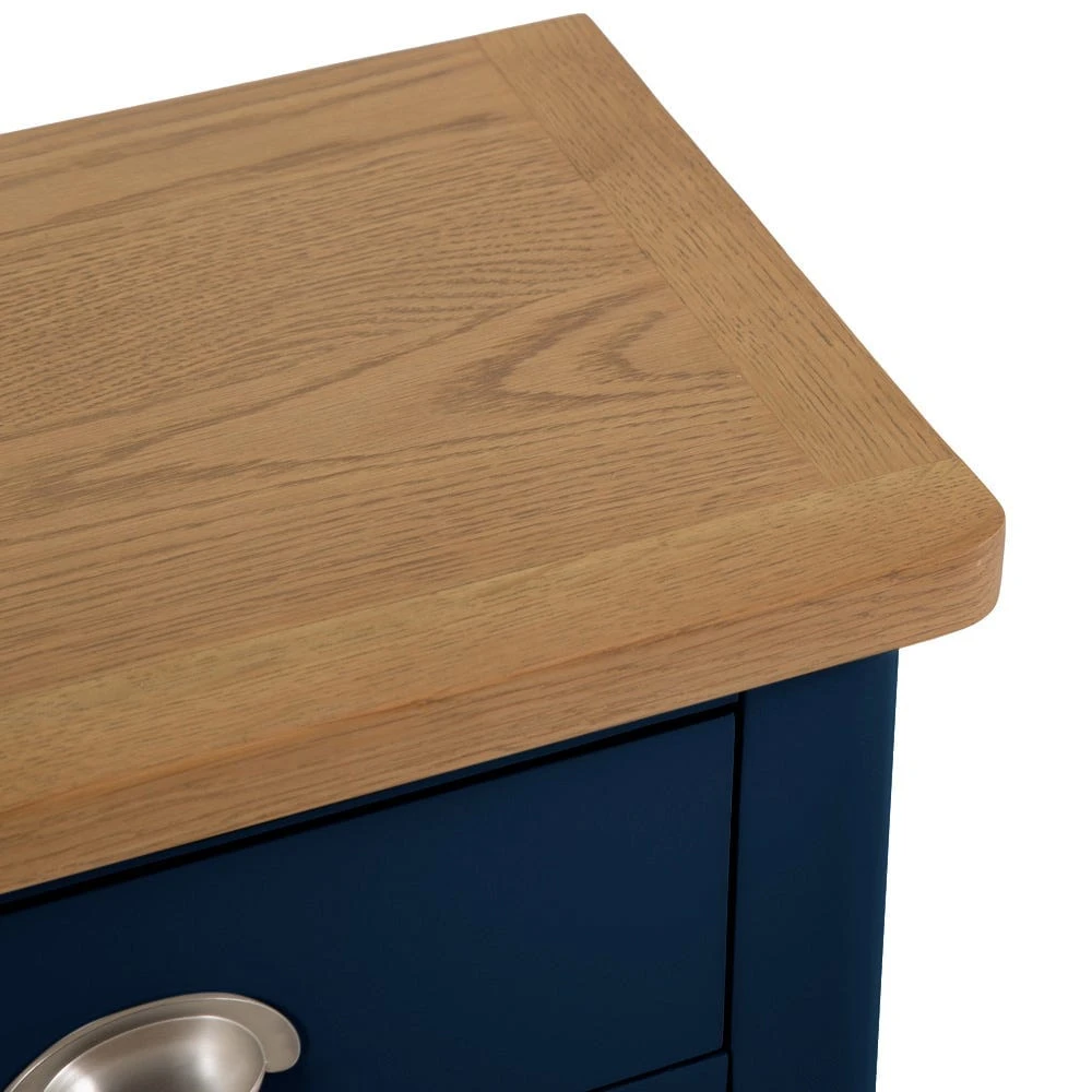 The dark blue paintwork introduces contemporary colour into any part of your home, and the pale wicker and solid oak top add contrasting splashes of light. You can keep this cabinet in your hallway to display a warm lamp or some framed photos, or use it as a side table to accommodate drinks and snacks in any living space.