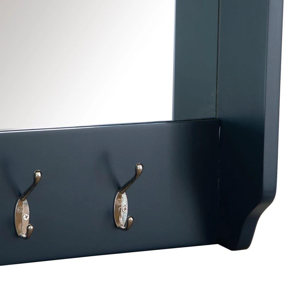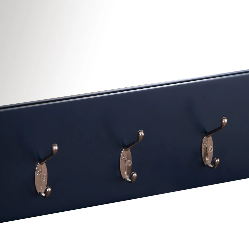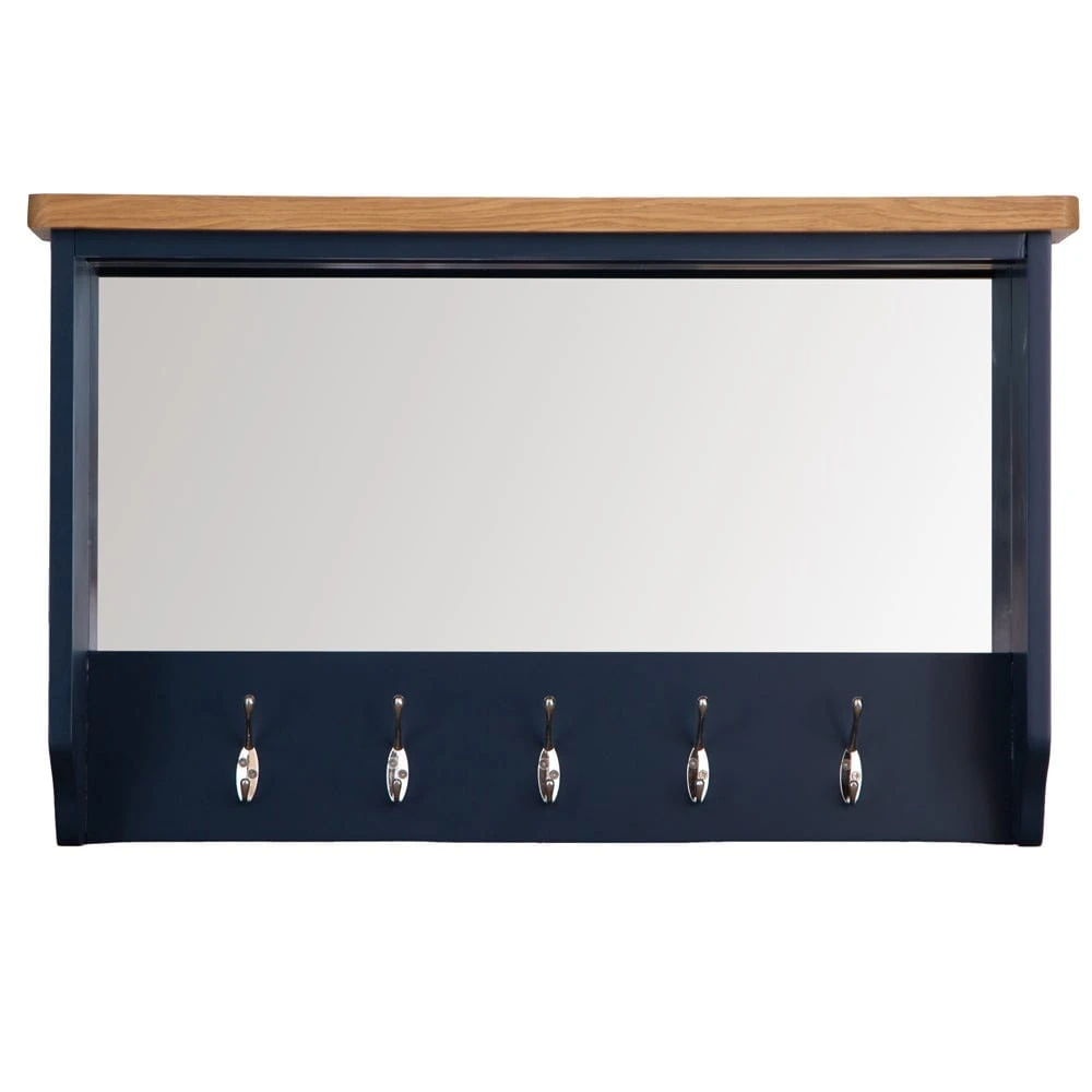 Organise your hallway in style with our Rutland blue painted oak mirrored coat rack. It has five chrome hooks so you can easily grab coats, scarves and brollies as you dash out of the door. The large mirror creates the illusion of extra space and light even in narrow entrances.