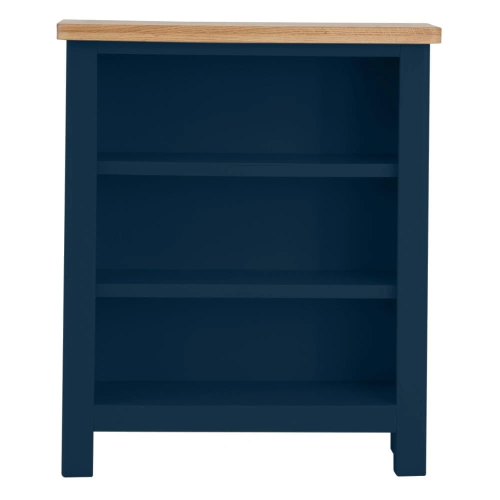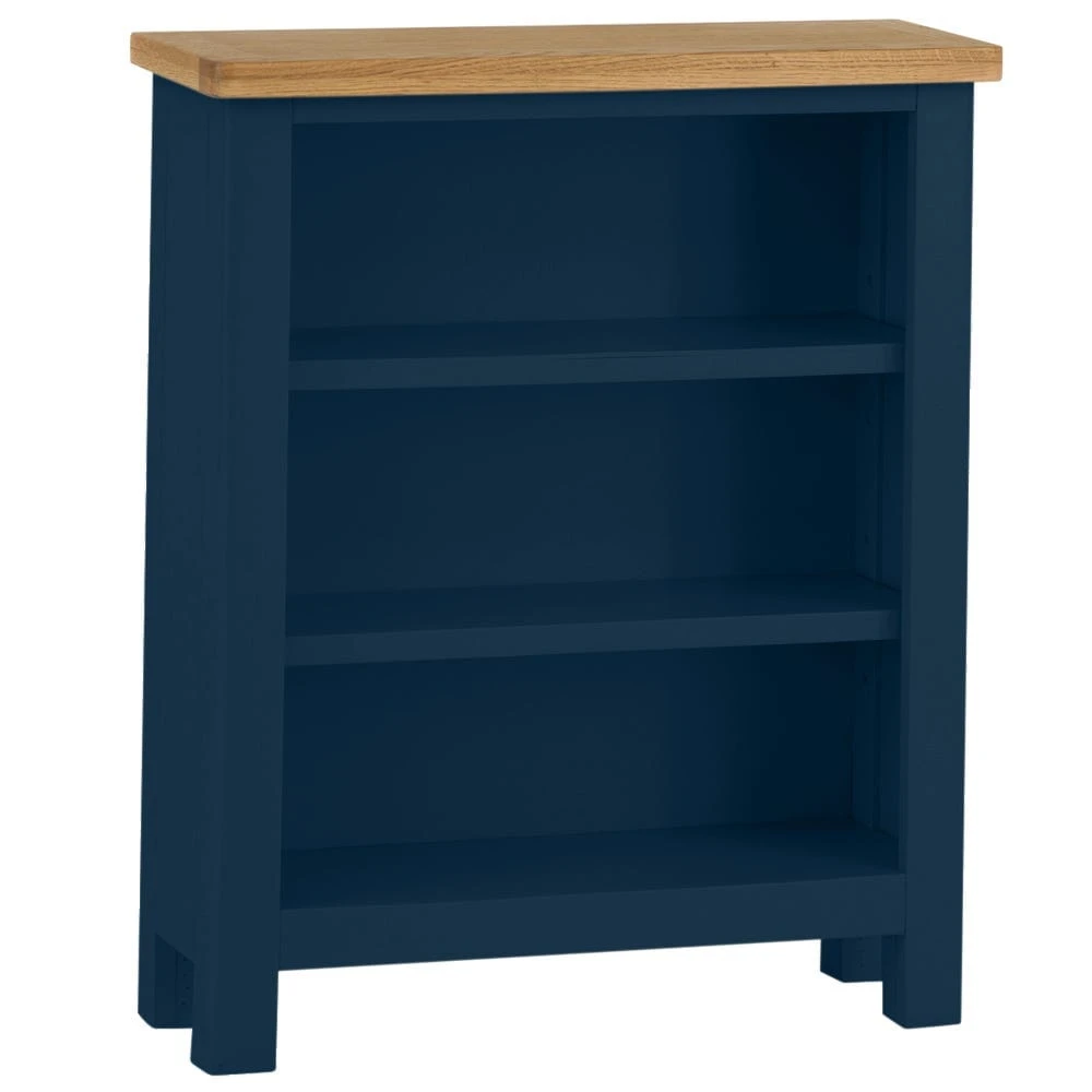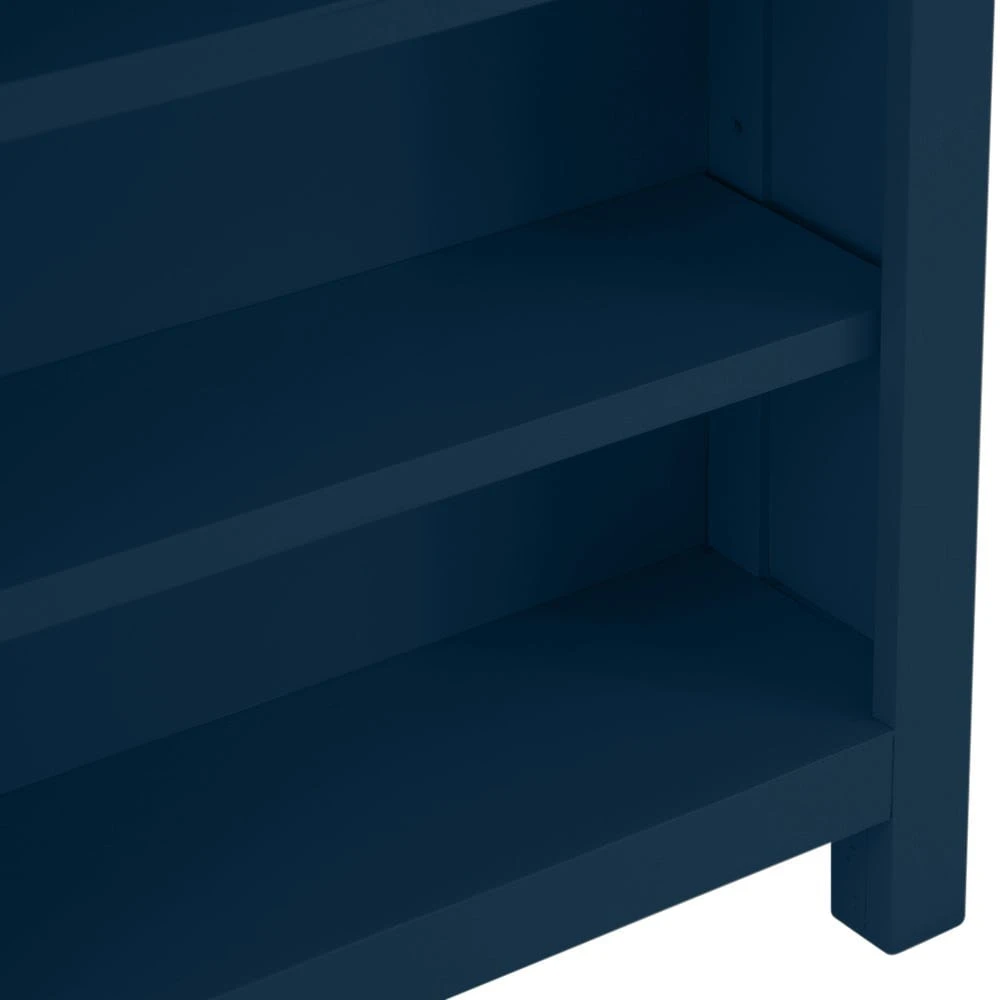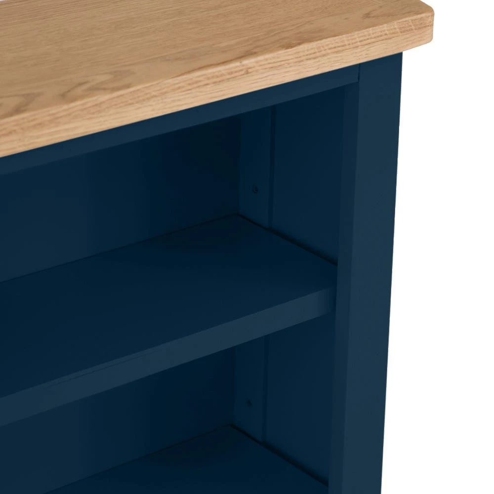 Our Rutland blue painted oak small wide bookcase is petite enough to fit into any reading nook and has plenty of room on its shelves for your favourite novels and geekiest non-fiction. You can also use it to show off a few collectables or some family snaps.