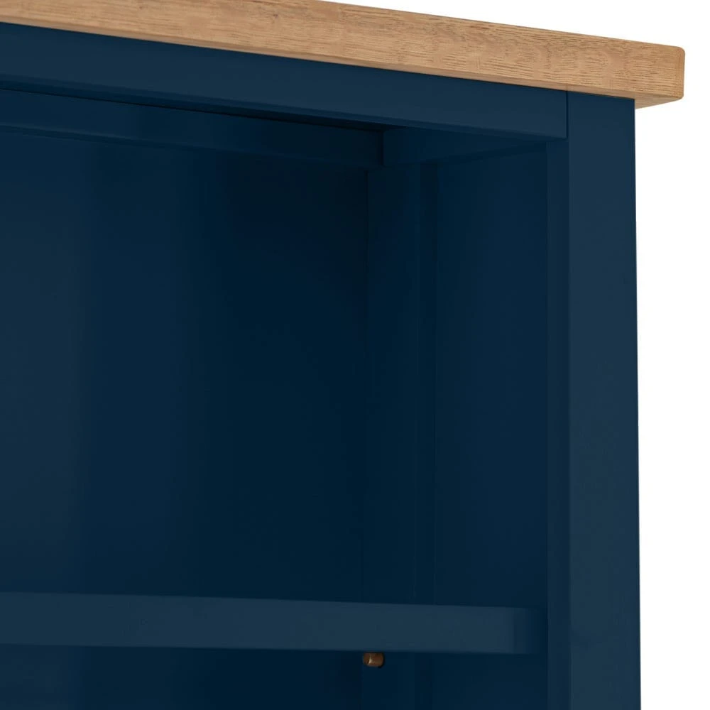 This lofty bookcase is finished in our distinctive blue, which brings a splash of contemporary colour to any corner of your home. The oak top adds a traditional touch, and the corners and edges are rounded to give a soft finish to the chunky frame. This piece requires no assembly and makes a striking addition to your living room.