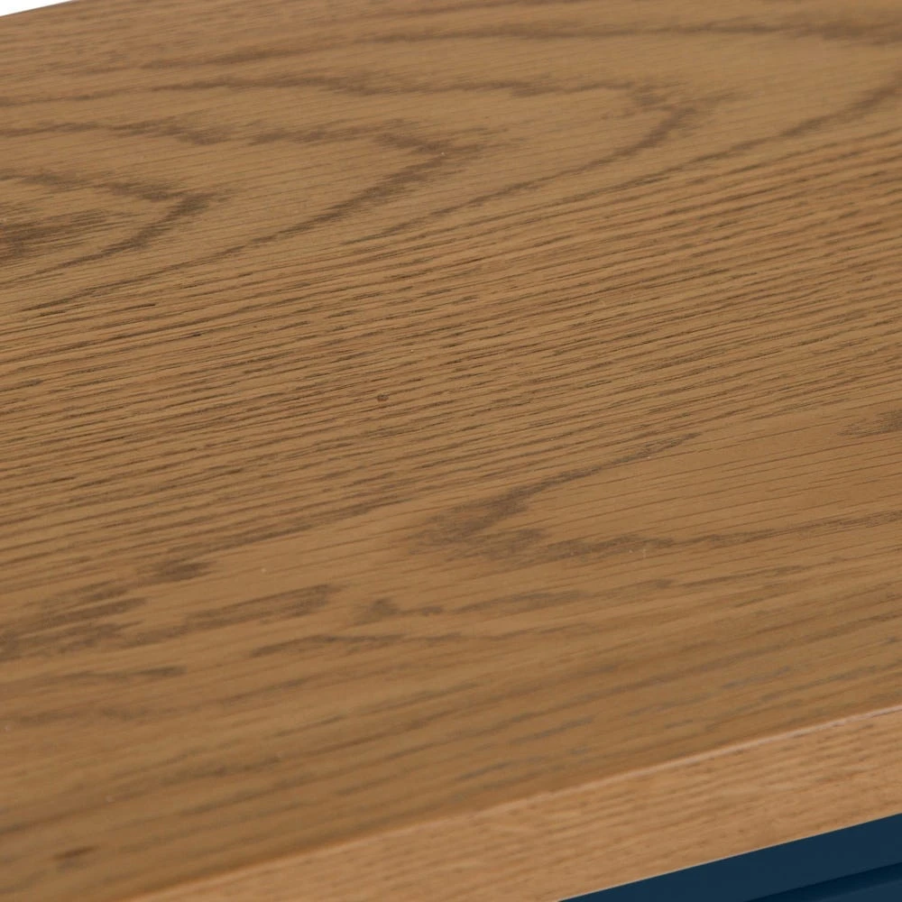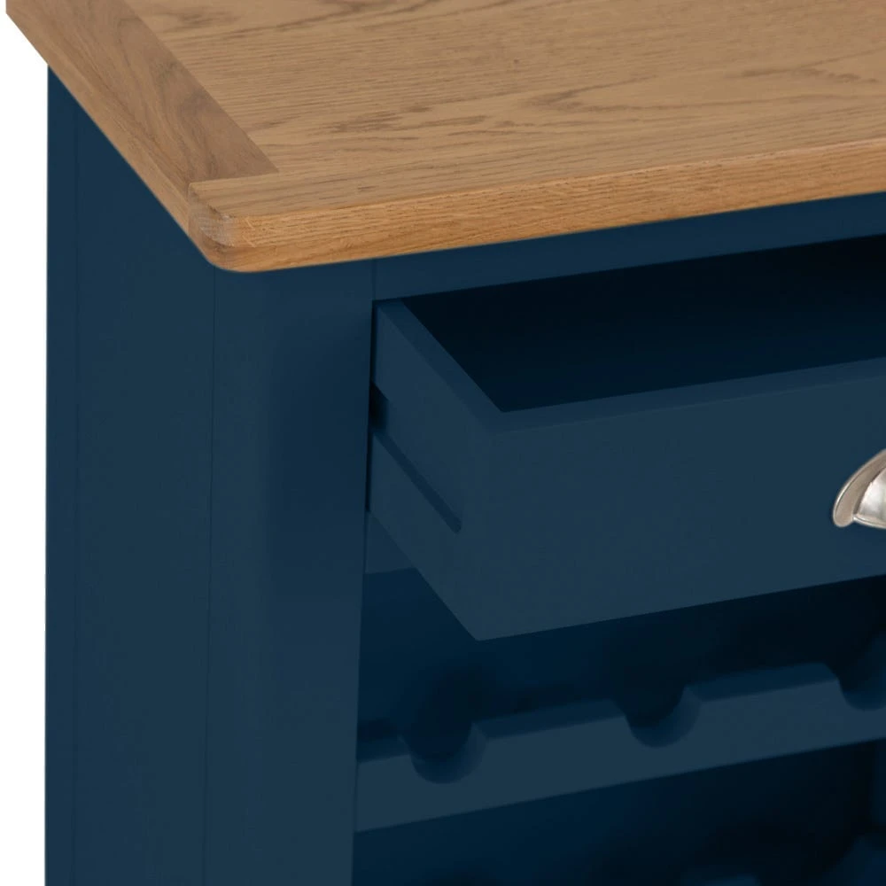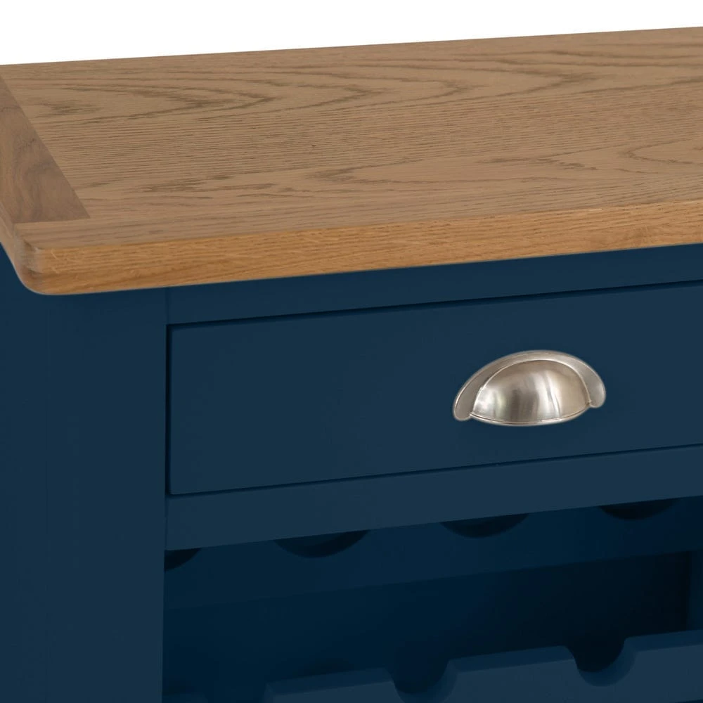 Our rich blue finish makes a stylish addition to any kitchen or dining area, and the natural oak top brings the warm appeal of a cosy farmhouse. A chrome cup handle adds a touch of opulence to this classic piece.