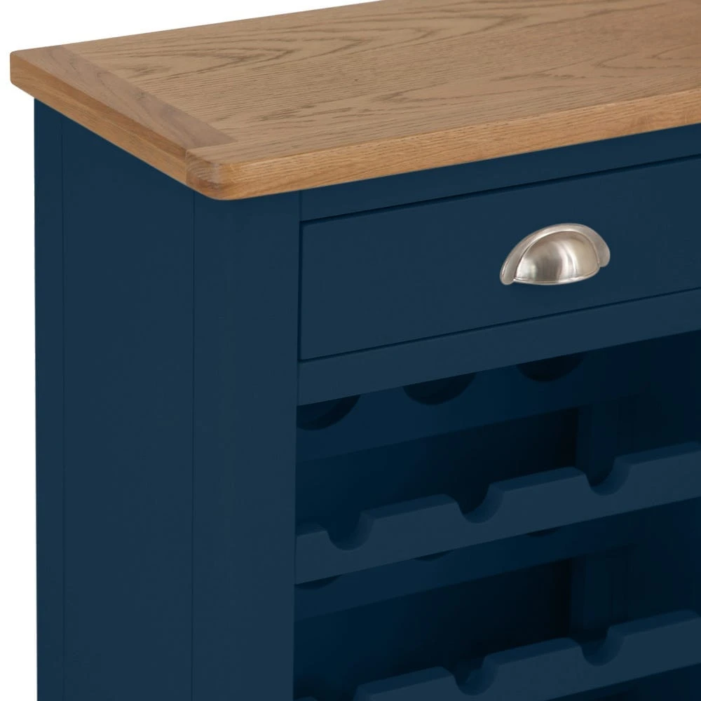 Connoisseurs and bon viveurs – this one’s for you. Our ultra-elegant Rutland blue painted oak wine cabinet can accommodate up to 16 of your best bottles, so you can keep the top-ups coming at your next gathering.