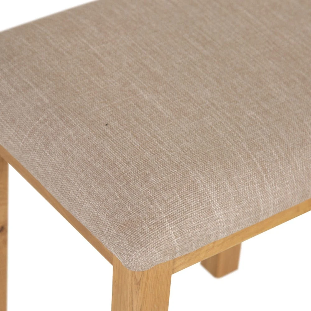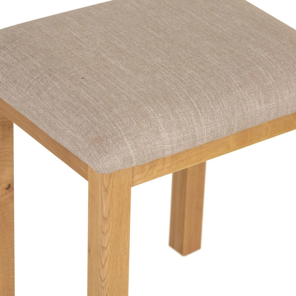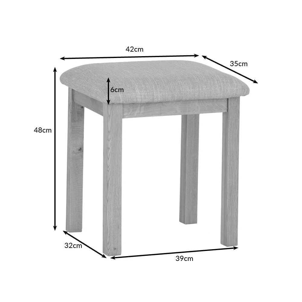 This elegant Rutland oak dressing stool is crafted from solid oak and oak veneers to make a stable and stylish seat while you get ready for the day. The chunky legs have smooth, rounded edges and a lacquered finish for a touch of luxury, while pale grey upholstery on the cushioned seat complements the elegant blonde wood. This dressing table stool is designed to sit alongside our Rutland oak dressing table and mirror to give you a matching trio, and it also works well as a compact standalone seat in a living area. It comes pre-assembled and ready for use.