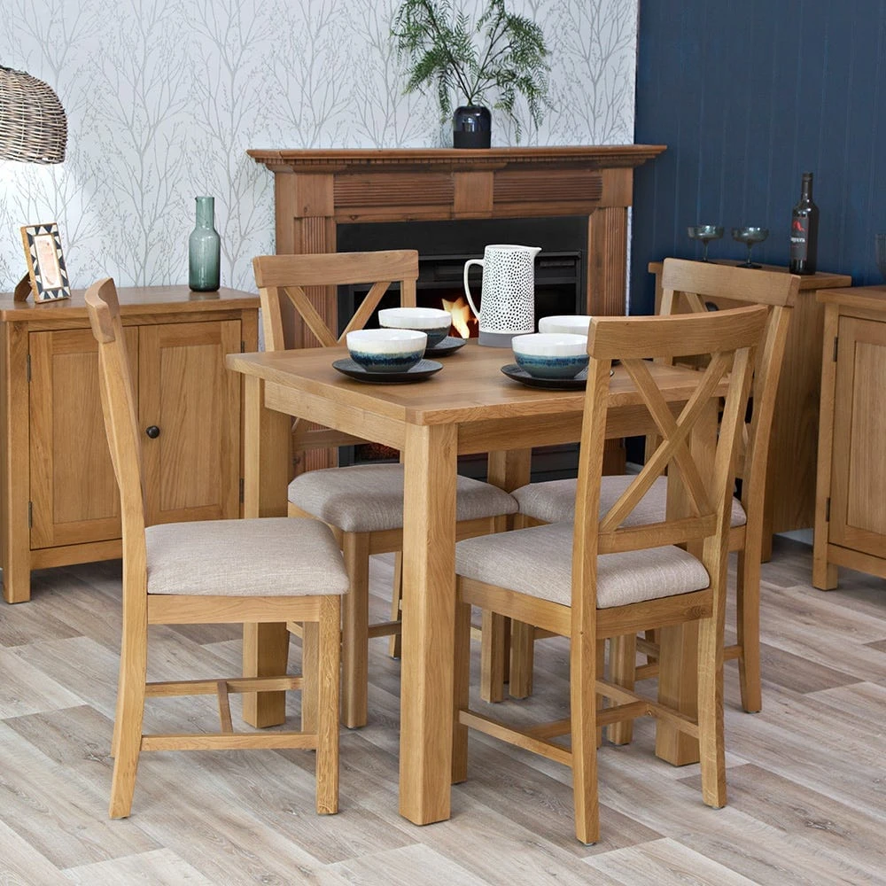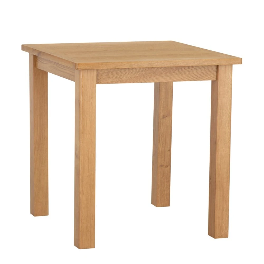 Our Rutland oak fixed top dining table has classic square proportions and appealingly chunky legs to make a charming addition to your kitchen. Its rich golden colour, characterful grain and smooth, rounded corners bring all the warmth of a country kitchen into your home. At 75cm wide, it can comfortably seat four, and the lacquered finish and sturdy oak composition make it resilient in the face of even the most raucous family mealtime. Alternatively, keep it all to yourself for date nights and takeaways-for-two. Choose from our collection of Rutland oak chairs for a matching dining set-up.
