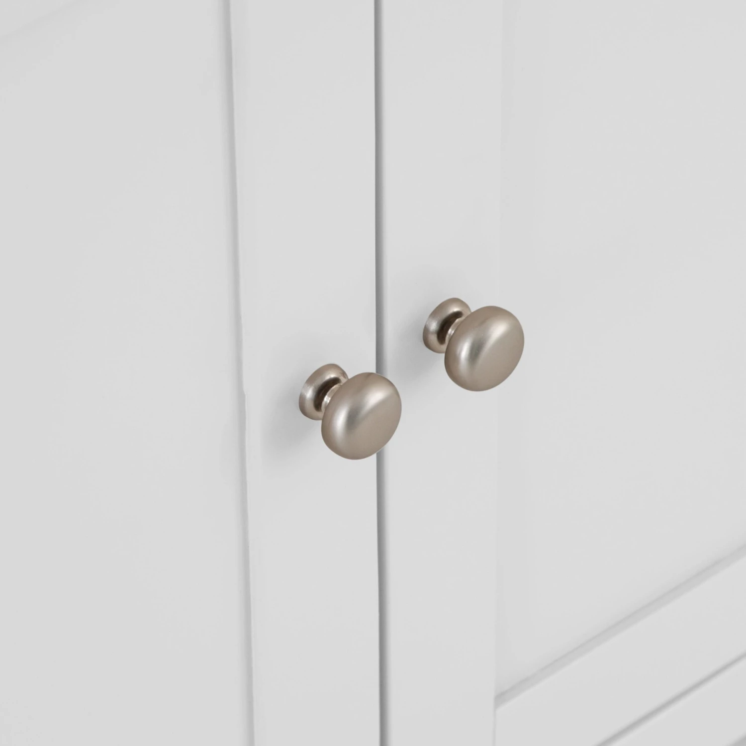 Our White-finish has a timeless appeal that fits seamlessly into any space, and the chrome doorknobs add a touch of luxury. Rounded corners and edges lend softness to the chunky frame.