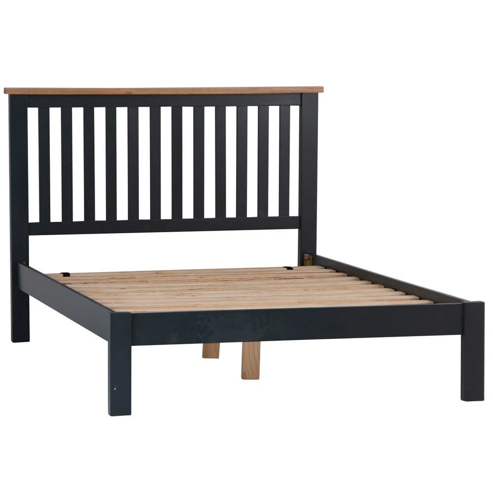 Our elegant midnight blue finish is suitably snooze-inducing, and the natural oak top gives this bed frame a traditional finish. Its generous 166cm width means you’ll slumber with ease even on hot summer nights.