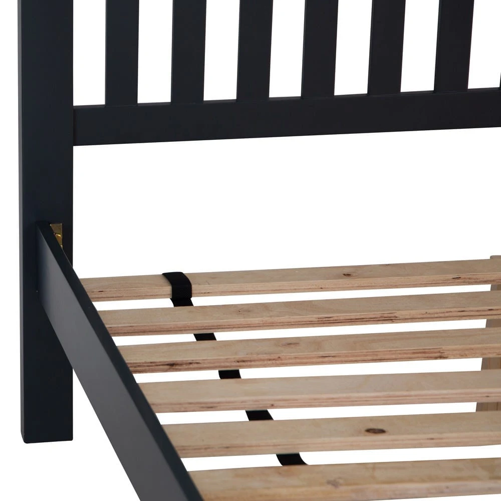 This Salisbury blue painted oak king-size bed frame promises uninterrupted sleep every night. The base is supported by an additional central rail and legs, and the tall slatted headboard lets you prop yourself up with the papers on a weekend morning.
