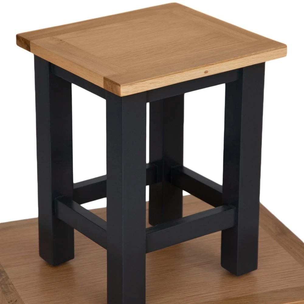 Our classic dark blue finish enhances the square legs to create a striking silhouette against both plain and patterned walls. The natural oak top adds a note of rustic charm. You can also use these tables anywhere in your home as permanent display units for framed family snaps, soft lighting or your favourite ornaments.