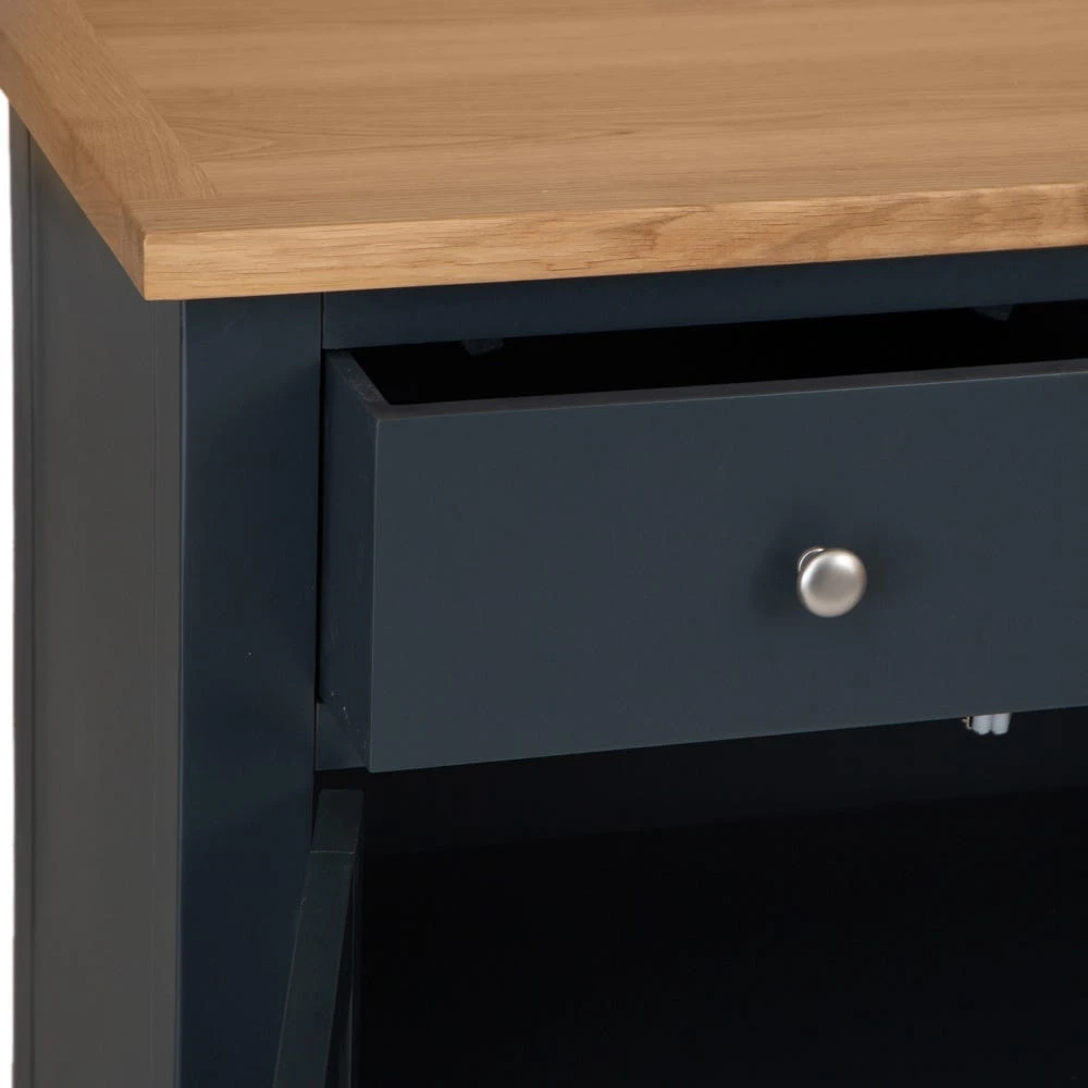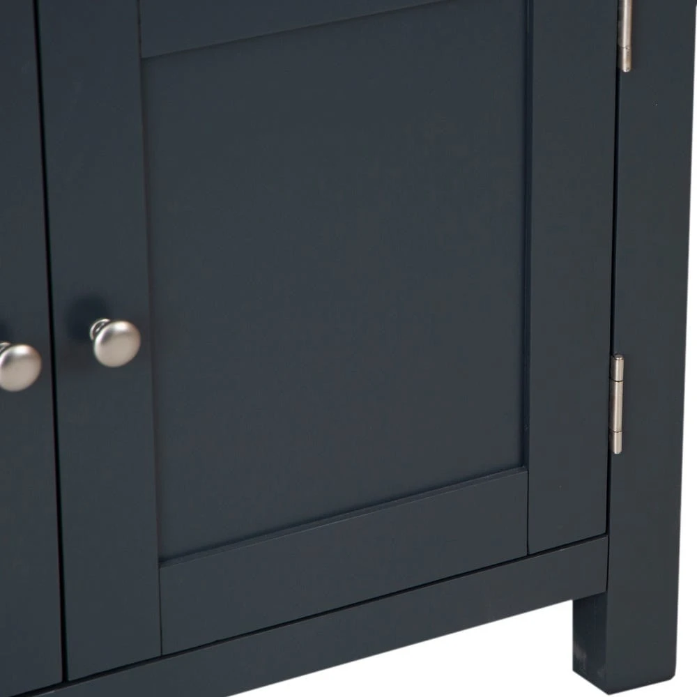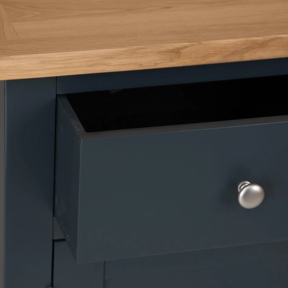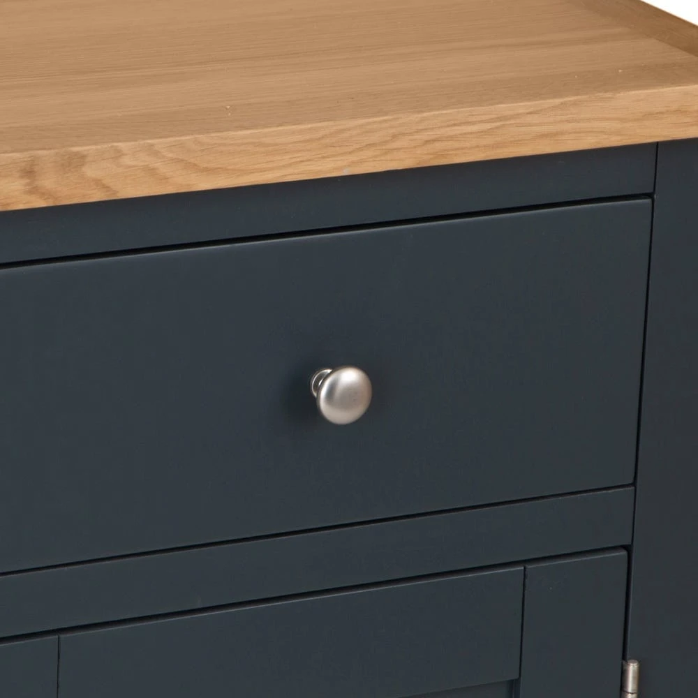 Looking for storage with a side-order of style? Our Salisbury blue painted oak small 2-door sideboard combines classic straight lines with an elegant midnight colour to transform your living room or dining space. The chrome handles lend contrasting light to the frame, and the oak top adds artisan appeal.