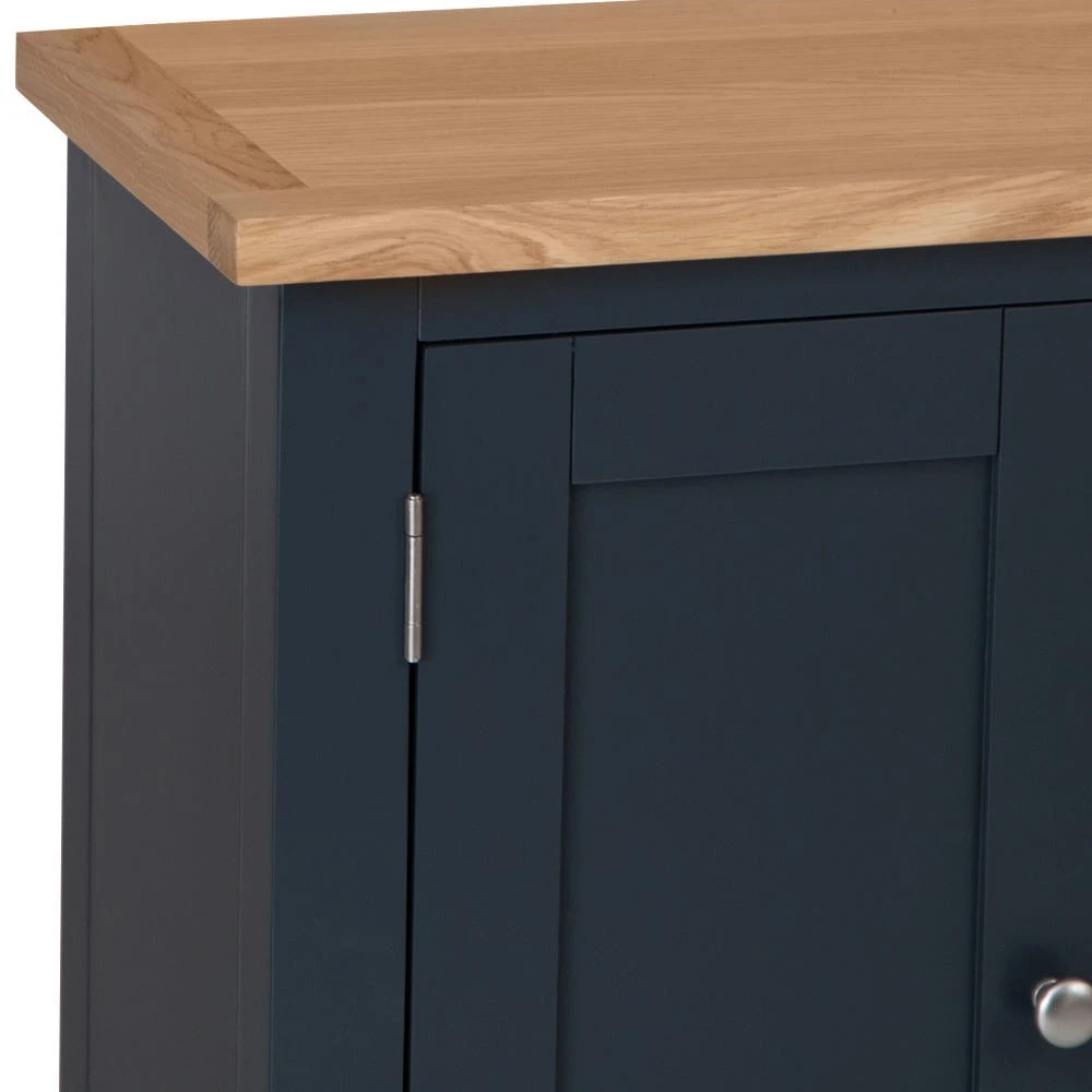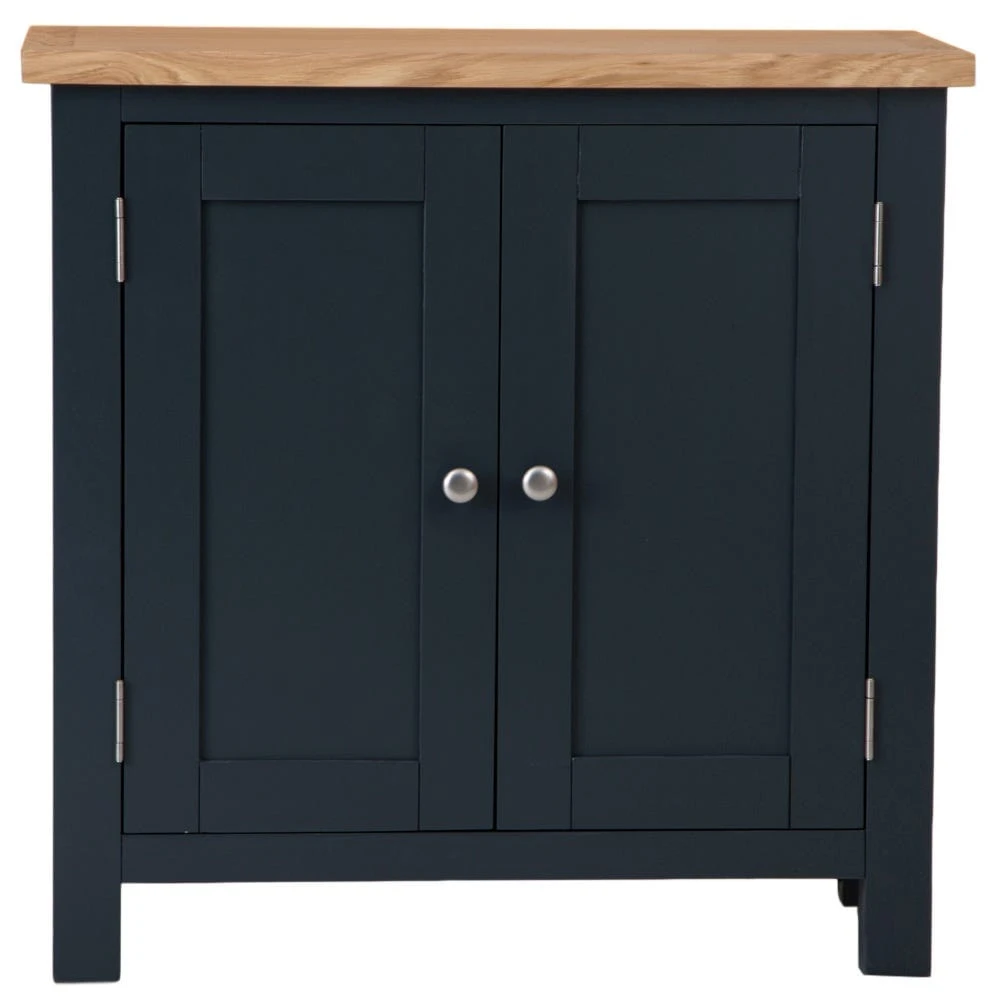 Invite rich colour and sophisticated design into your dining area with this Salisbury blue painted oak small cupboard. It has a pair of fixed shelves for special-occasion crockery and glassware, and the natural oak top is ideal for clearing plates between courses.
