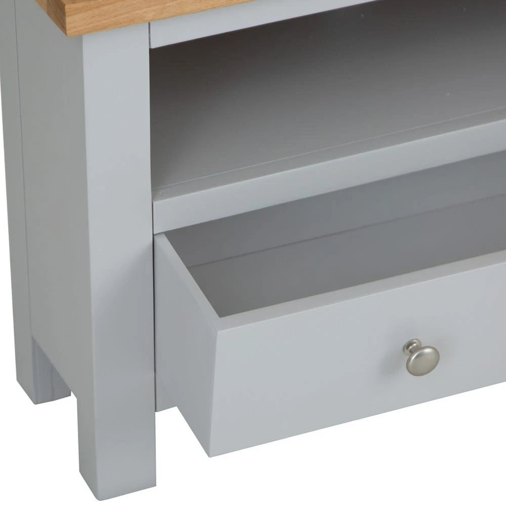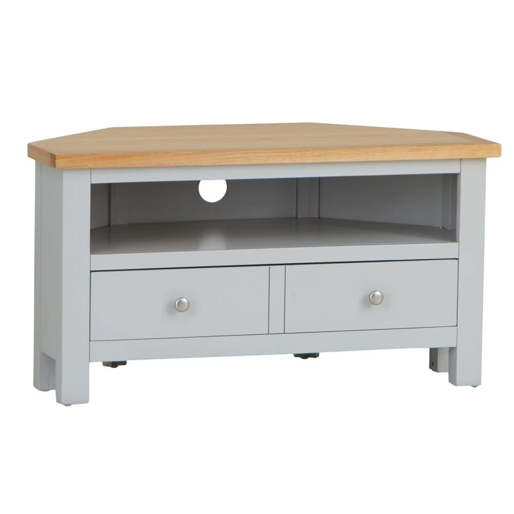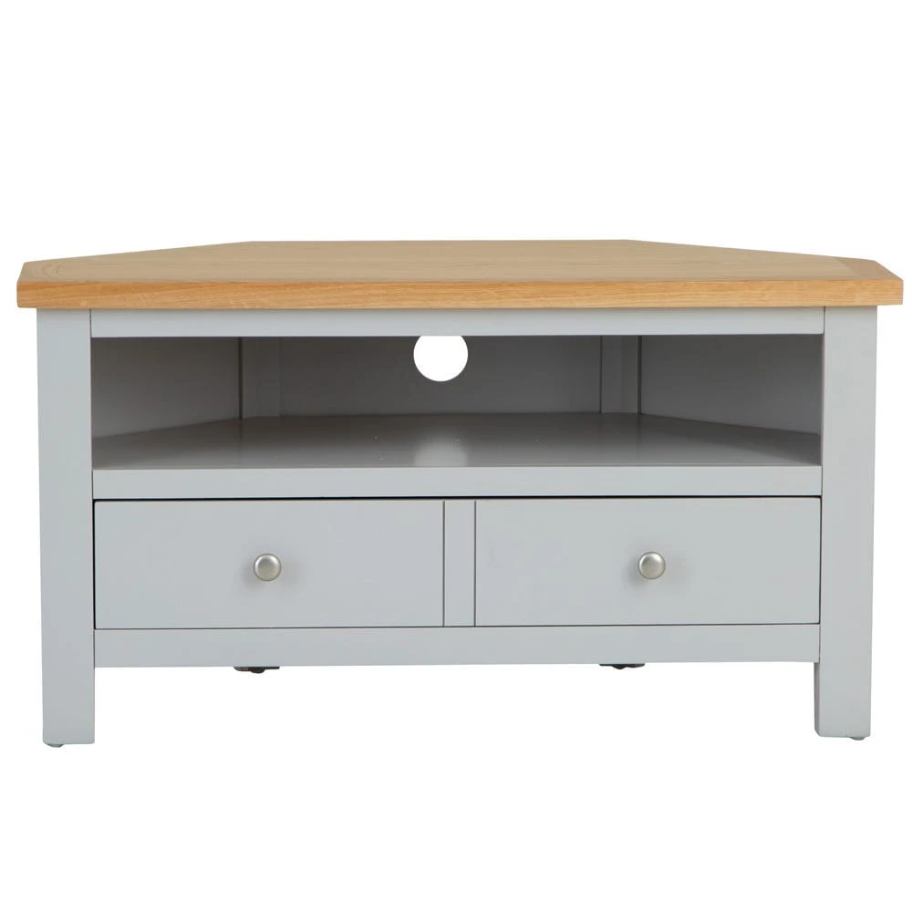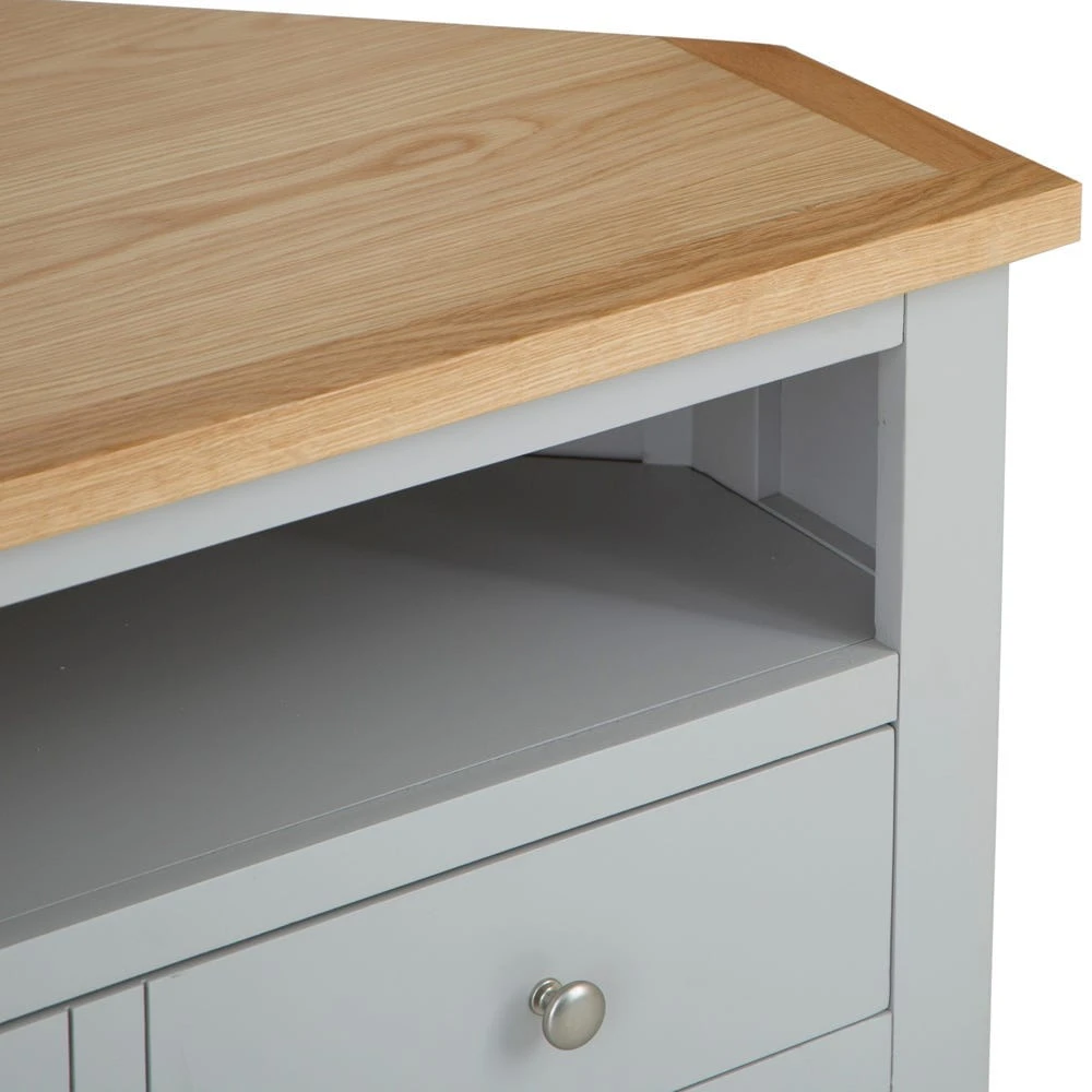 And relax. This Salisbury grey painted oak corner TV unit is ideal for chilled-out evenings with your favourite sitcom or crime series, and makes an elegant focal point too.