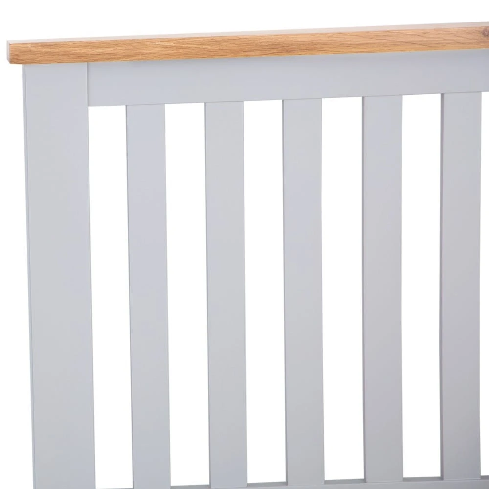 Combining style and comfort, this Salisbury grey painted oak king-size bed frame is a sight for tired eyes. It’s painted in a calming pale grey to ease your journey to the land of nod, and our signature oak top adorns the slatted headboard for a farmhouse-style flourish.