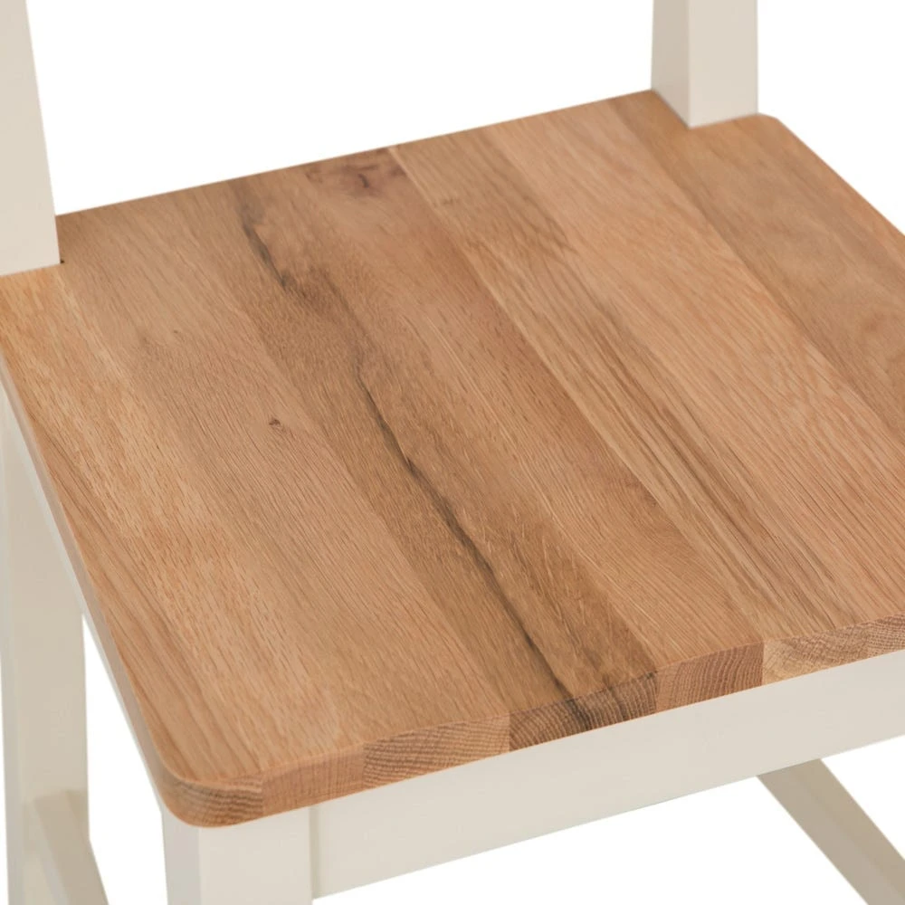 Whether you’re grabbing a sandwich or settling down for a family roast, our Salisbury ivory painted oak dining chair will keep you sitting in comfort. Its classic silhouette is complemented by the warm ivory finish and natural oak seat to bring true farmhouse-style charm into your kitchen or dining room.