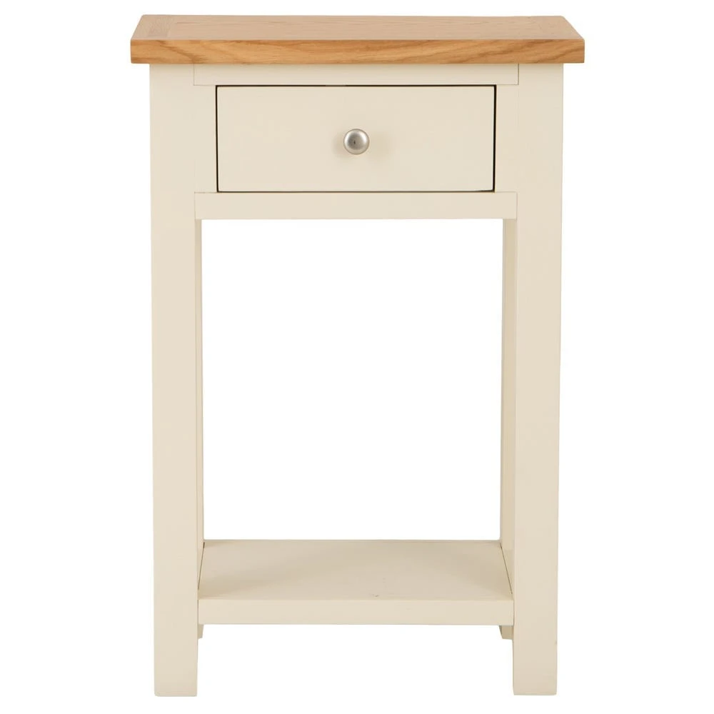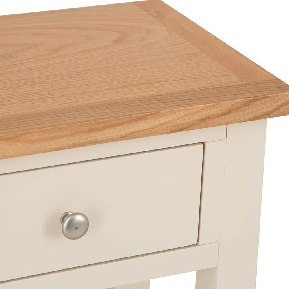 Keep a vintage letter rack on the top of this piece for old-school charm, or use it to display a jug of fragrant flowers to entice your guests through the door. Our luxurious ivory hue fits seamlessly into any hallway, and the natural oak top adds a charmingly rustic feel to your home.