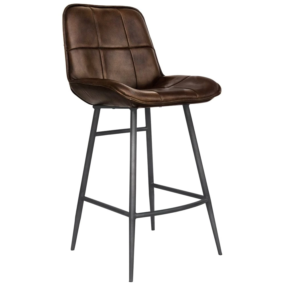 Shoreditch Industrial Brown Square Panel Leather Bar Stool