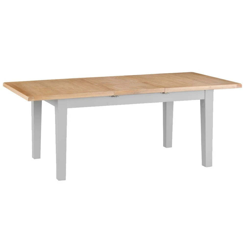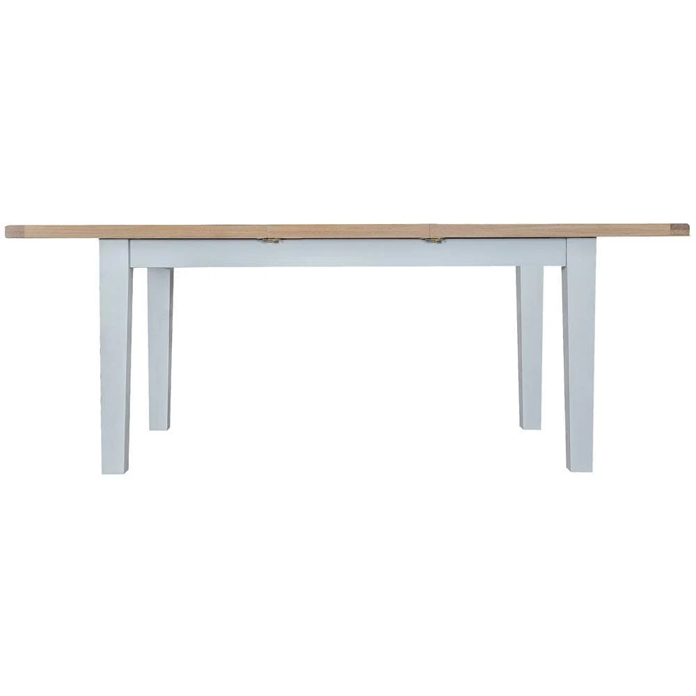 This Suffolk grey painted oak 1.6m butterfly extending dining table easily increases in size to 2.1m whenever you need a little extra surface space. The two halves pull apart to accommodate a central insert, so you can seat up to ten guests in comfort.