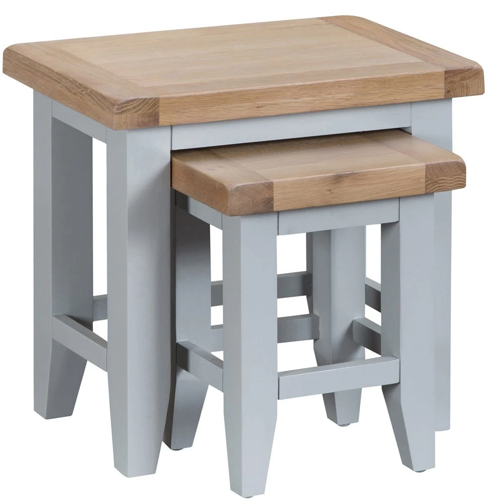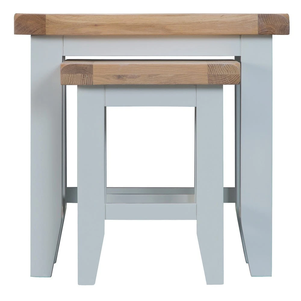 Two’s company with this Suffolk grey painted oak nest of 2 tables. You can use them as occasional tables when you’re hosting guests to keep hot drinks and glasses of wine easily to hand. They nest neatly back together if floor space is a precious commodity.