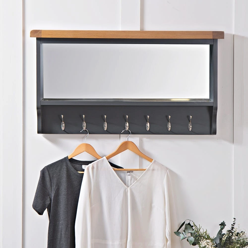 Suffolk Midnight Grey Painted Oak Large Mirrored Coat Rack