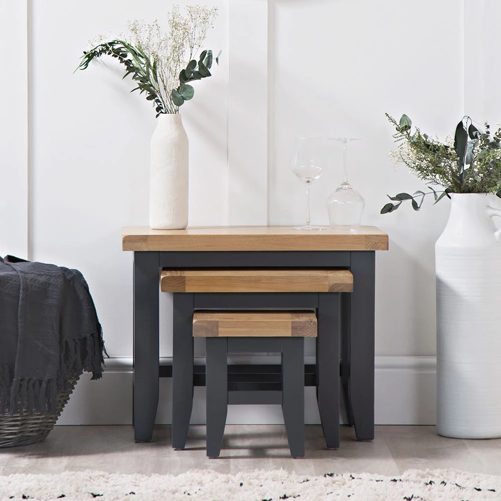 Suffolk Midnight Grey Painted Oak Nest Of 3 Tables