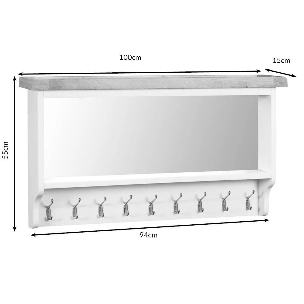 When you’re bustling the household out of the door in the morning, it’s useful to have all the coats in one place. There’s more than enough space on the Suffolk white painted oak large mirrored coat rack – with its nine chrome pegs for jackets, hats and backpacks.