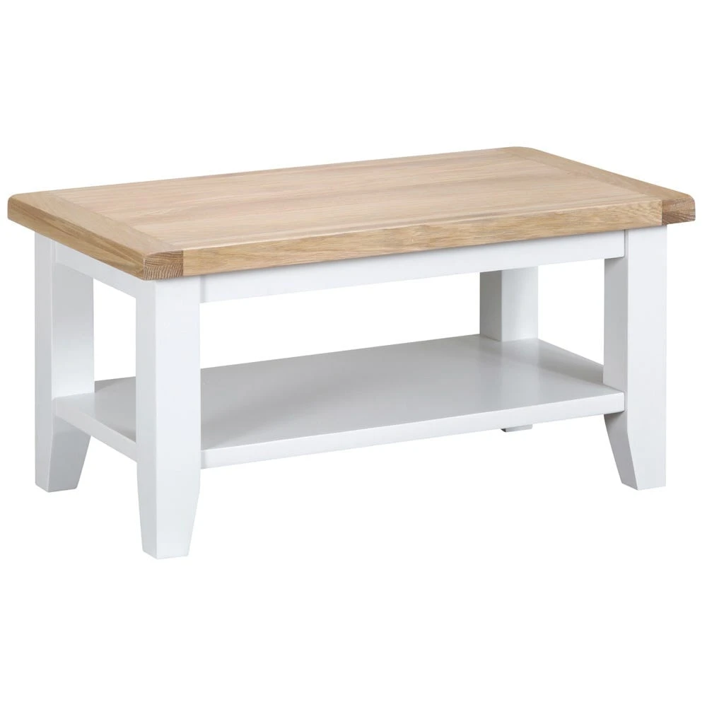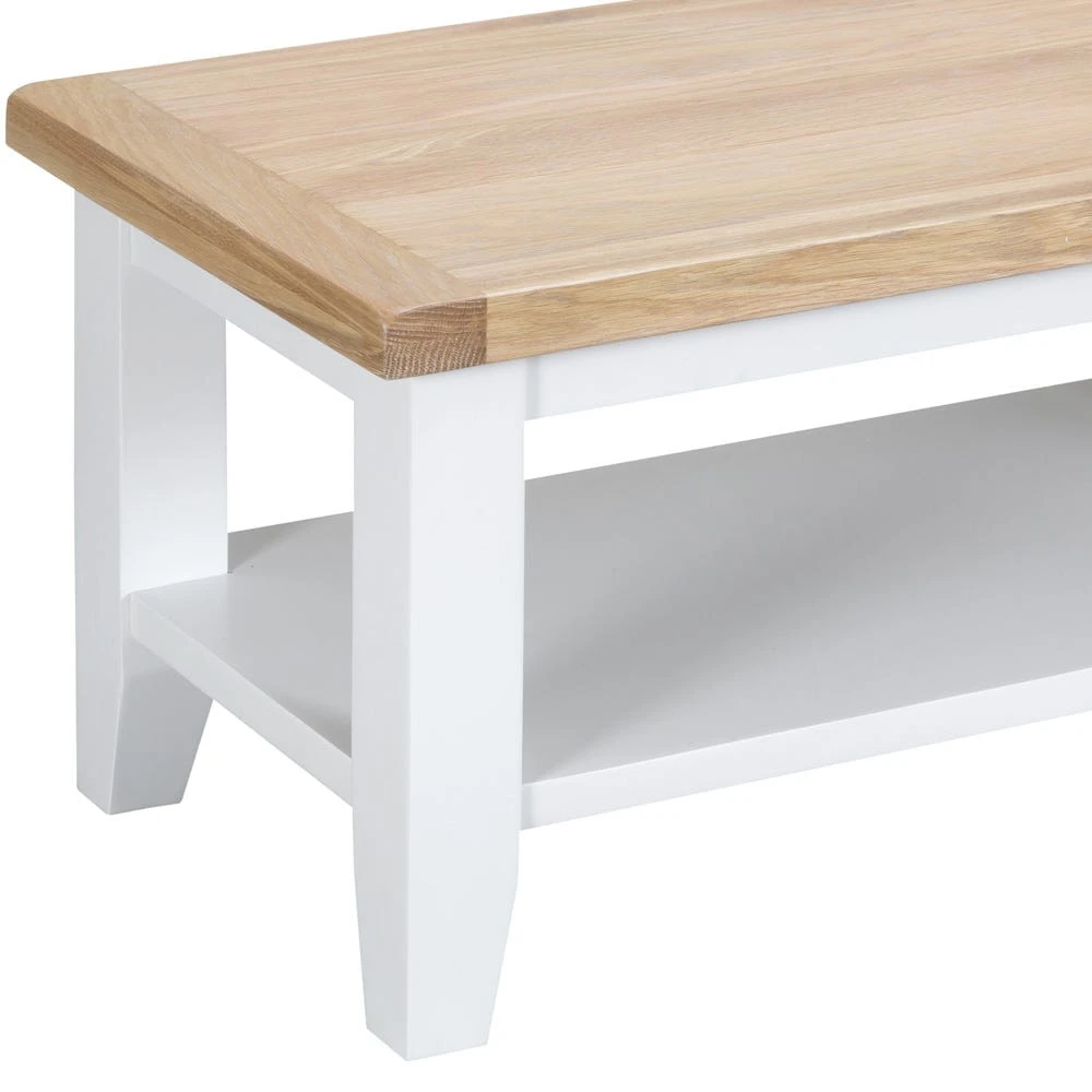 Your hardback books and glossy magazine have a new home – our Suffolk white painted oak small coffee table. Show them off on this solid oak table, hand-painted white to add some brightness to the middle of your living room.
