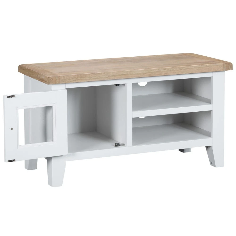Waking up in the morning to a mess of DVDs, games and cables gets old quickly. The Suffolk white painted oak standard TV unit will help you make quick work of tidying everything away efficiently.