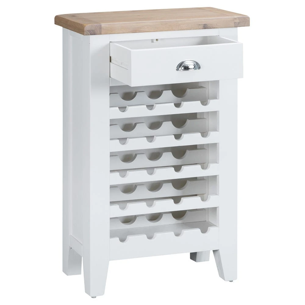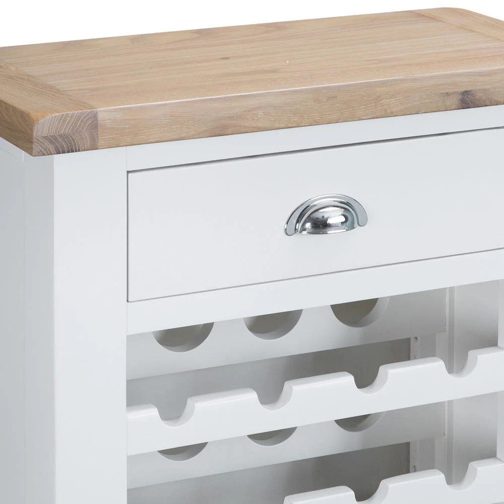 If the undrunk wine bottles are piling up – it’s easy to overstock when guests are coming – store them in our Suffolk white painted oak wine cabinet. The clean lines and traditional solid oak of this piece bring a modern-meets-traditional feel to your kitchen.