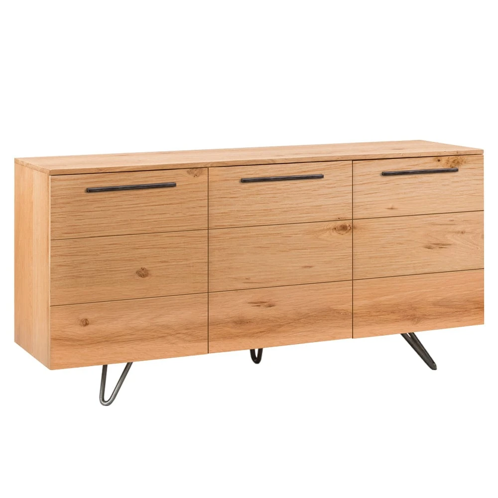 The Valentino Industrial Oak 3 Door Sideboard is a piece designed for those of you who are looking for the finer things in life, but not the price tag that all too often comes with it. By taking the finest golden oak, handing it to our master craftsmen and then standing back as they get truly creative, we’ve produced a Side Unit that needs no introduction. From the metal handles and pin legs, to the smooth finish and seamless joins, you’ll find nothing but artisan quality everywhere you look.