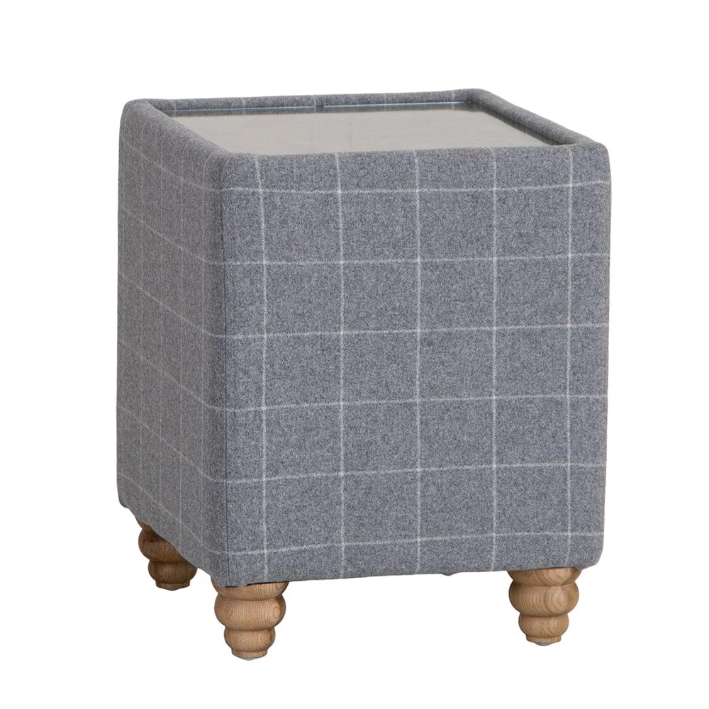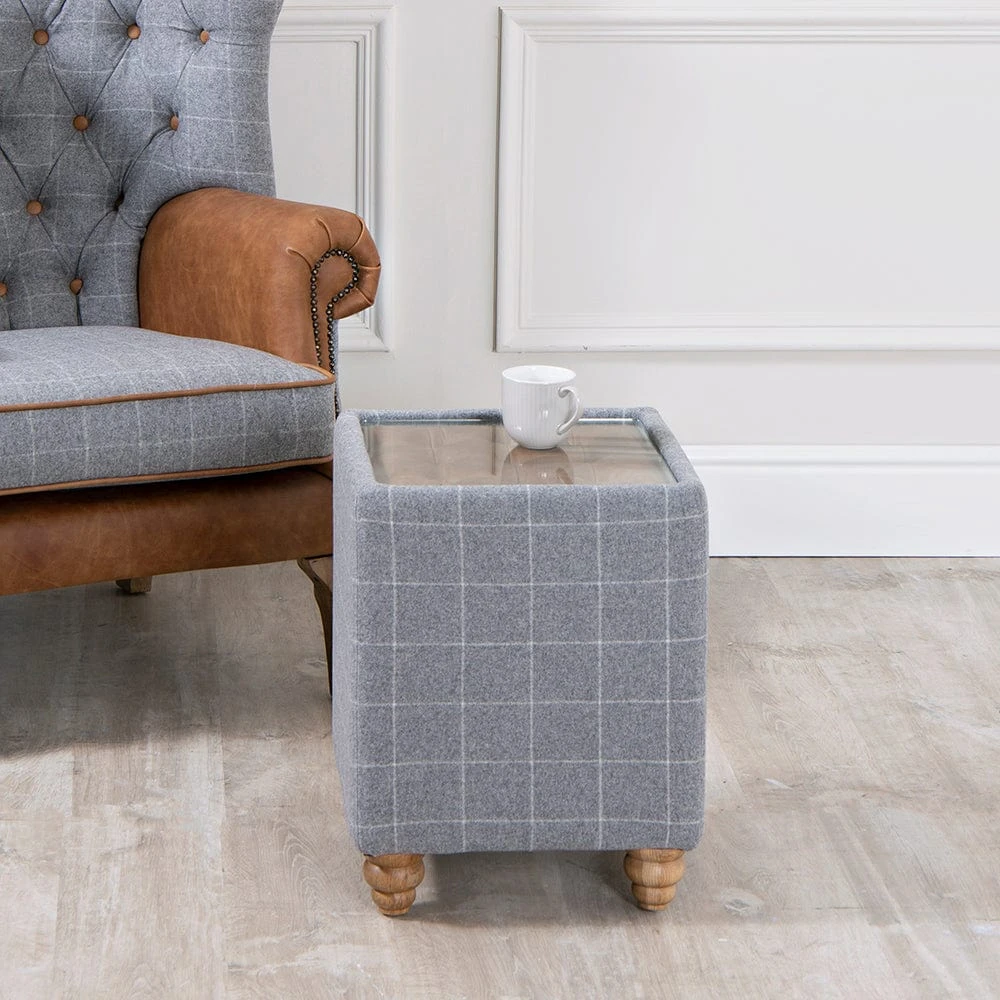 Be the first to review “Vintage Grey Check End Table In Tweed With Glass Top” Cancel reply