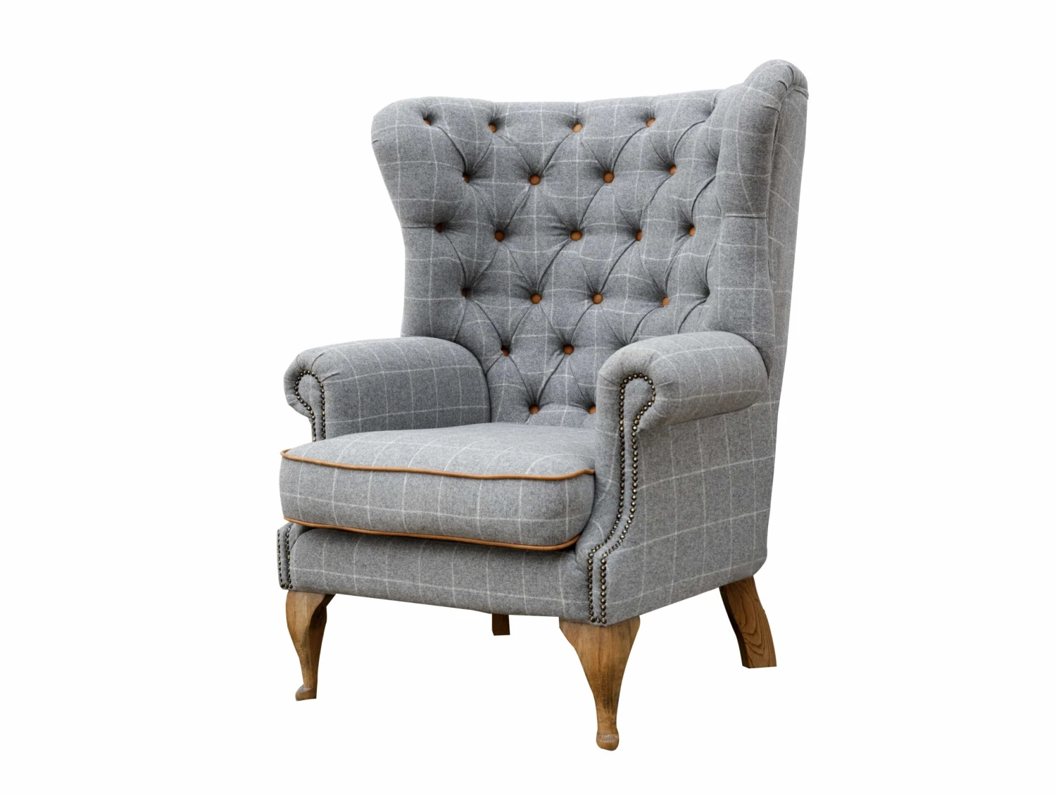 Vintage Grey Check Wing Chair In Tweed