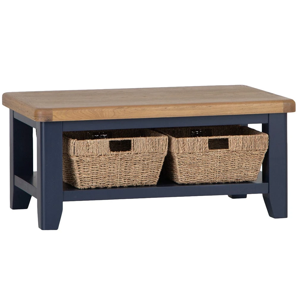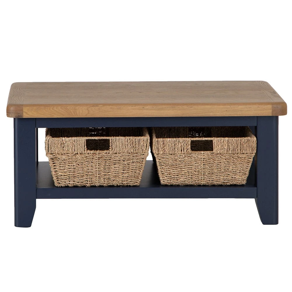 Wessex Smoked Oak Blue Painted Coffee Table With Wicker Baskets